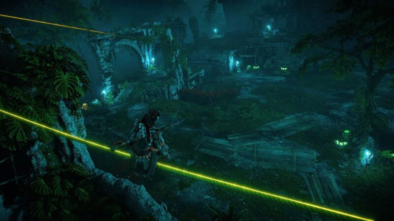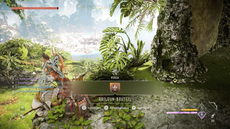 Danach werdet ihr ein bisschen herumreisen beziehungsweise herumfliegen müssen, ehe ihr letztendlich an einem Lager ankommt. Dieses steht unter dem Kommando von Pirik, der andere Mitglieder seines Stammes entführt hat und arbeiten lässt. Nachdem ihr in seinem Lager etwas aufgeräumt habt, müsst ihr die Gefangenen befreien und eine von ihnen wird sich Aloy daraufhin anschließen.