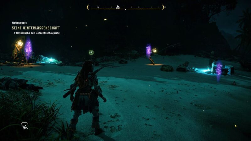 Im Rahmen der Story-Kampagne des PlayStation 5-exklusiven DLCs begibt sich unsere Protagonistin gemeinsam mit ihrer neuen Freundin Seyka auf die Suche nach vermissten Quen-Mitgliedern. In einer Mission treten sie einem mächtigen Krieger gegenüber, von dem Aloy den Phantomhandschuh erhält.