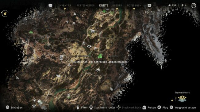 Wer die Reichtümer der Alten Welt an sich bringen will oder Horizon Forbidden West einfach nur auf 100% durchspielen möchte, muss kleine Rätsel in den Reliktruinen lösen, wozu auch der Ort Der Schrecken gehört, die erste Ruine in dem Spiel.