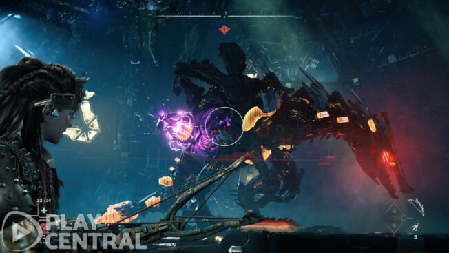 Der Schlachtrücken besitzt sogar zwei (!) Arten von schweren Waffen, die ihr abtrennen und selbst gegen die Maschine nutzen könnt. Davon solltet ihr auf jeden Fall Gebrauch machen, um besonders viel Schaden auszuteilen.