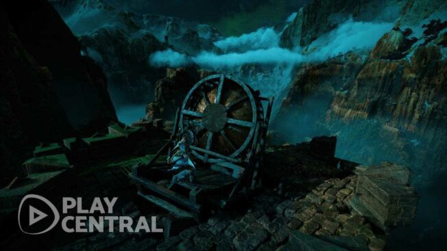 Lasst euch von eurem Fokus einen Weg anzeigen, den ihr hinaufklettern könnt. Oben entdeckt ihr eine Brücke. Auf der anderen Seite seht ihr mehrere Maschinen, um die ihr euch kümmern müsst, sowie eine Frau namens Raynah. Sie hat es auf die Linsen abgesehen und die erste findet ihr in eurer Nähe, nämlich oben auf einem Turm. Kleiner Tipp: Wesentlich einfacher wird diese Sammelei, wenn ihr fast bis zum Ende der Story wartet. Dann könnt ihr Sonnenflügel überbrücken und auf die Spitzen der Türme fliegen.