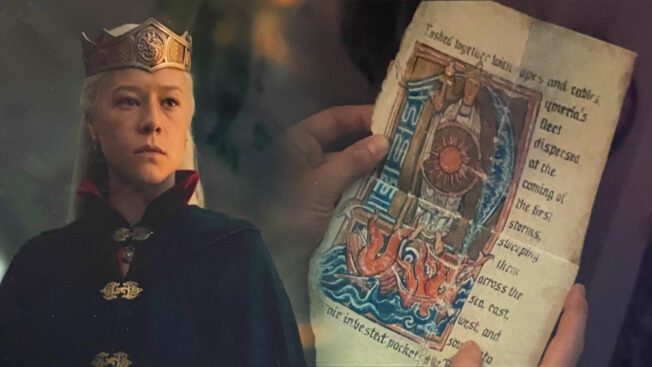 Um den drohenden Krieg abzuwenden, reist Otto Hohenturm nach Drachenstein, um Rhaenyra ein Friedensangebot zu unterbreiten. Er überreicht der „Schwarzen Königin“ eine Buchseite von der Königsmutter Alicent. Doch was hat es damit auf sich?