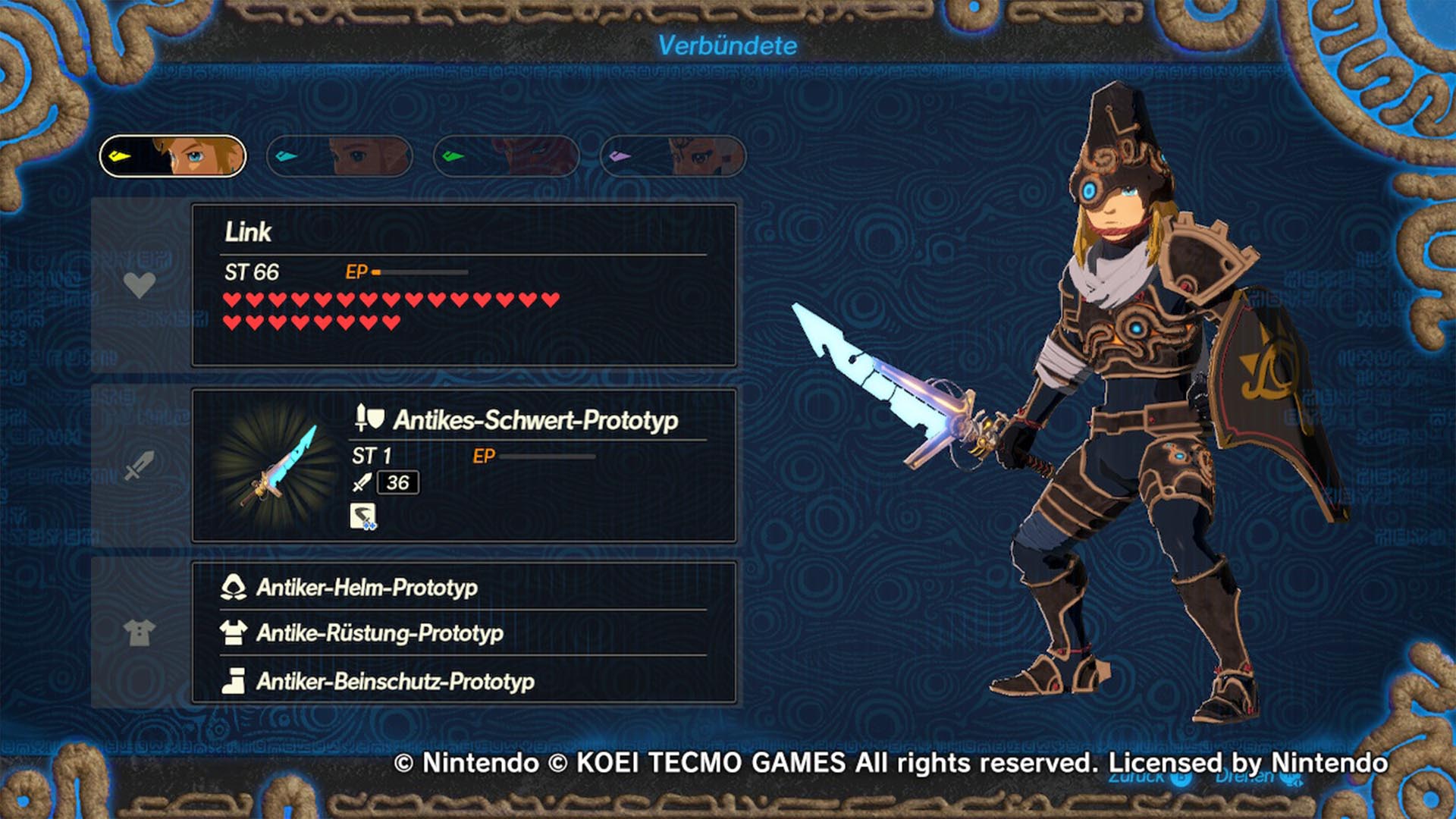 Allen Dingen voran bekommt Link nämlich eine ganz neue Rüstung spendiert. Wenn ihr den Season Pass kauft und das Spiel startet, dürft ihr erst einmal die neue, antike Rüstung anprobieren. Es gibt die antike Prototyp-Rüstung, bestehend aus: