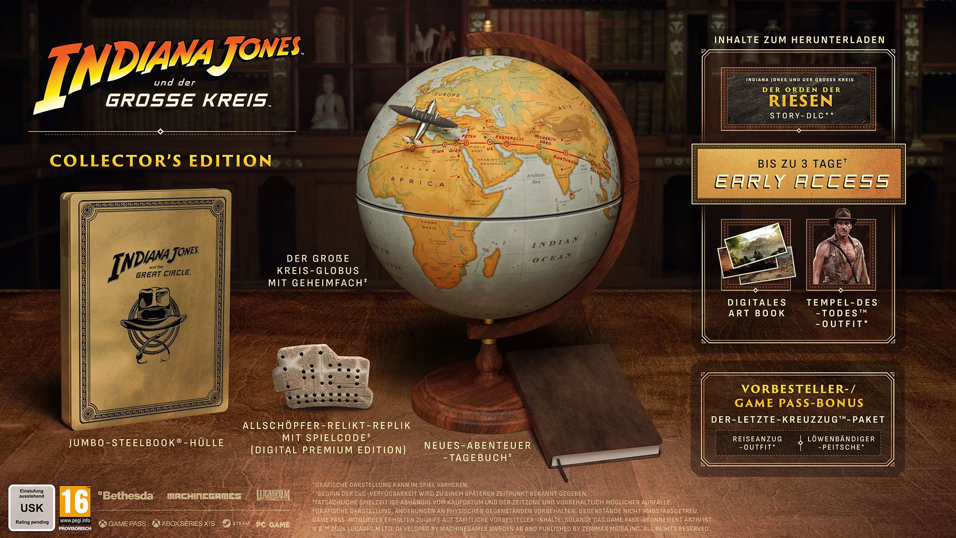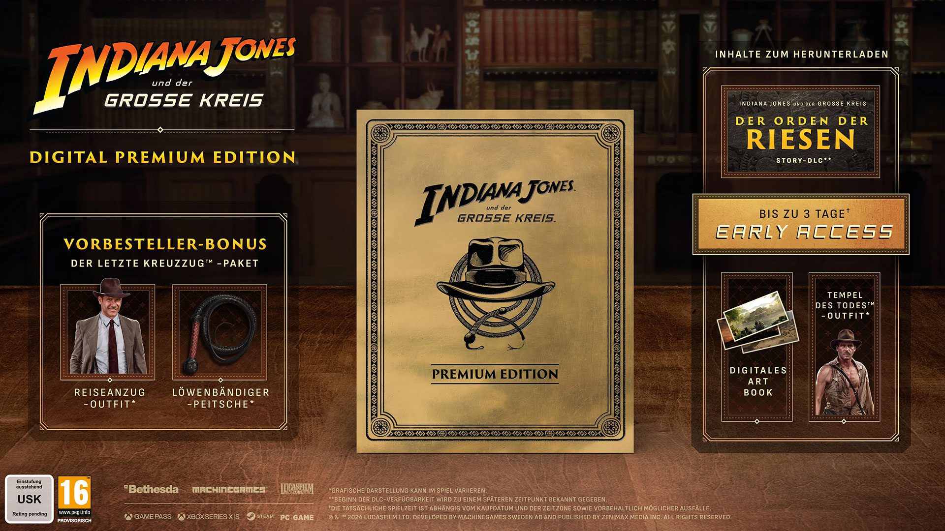 Für das kommende Action-Adventure Indiana Jones und der Große Kreis, das am 6. bzw. 9. Dezember 2024 für Xbox Series X|S und PC veröffentlicht wird, gibt es verschiedene Editionen, die jeweils unterschiedliche Inhalte bieten.