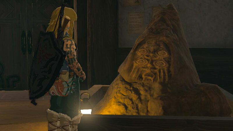 Auf die erste Magierstatue werdet ihr mit großer Wahrscheinlichkeit im Spähposten (-0252, 0152, 0020) in der Region Inneres Hyrule stoßen. Sucht das Büro von Robbie und Josha auf und sprecht hier mit der Statue in der hinteren rechten Ecke.