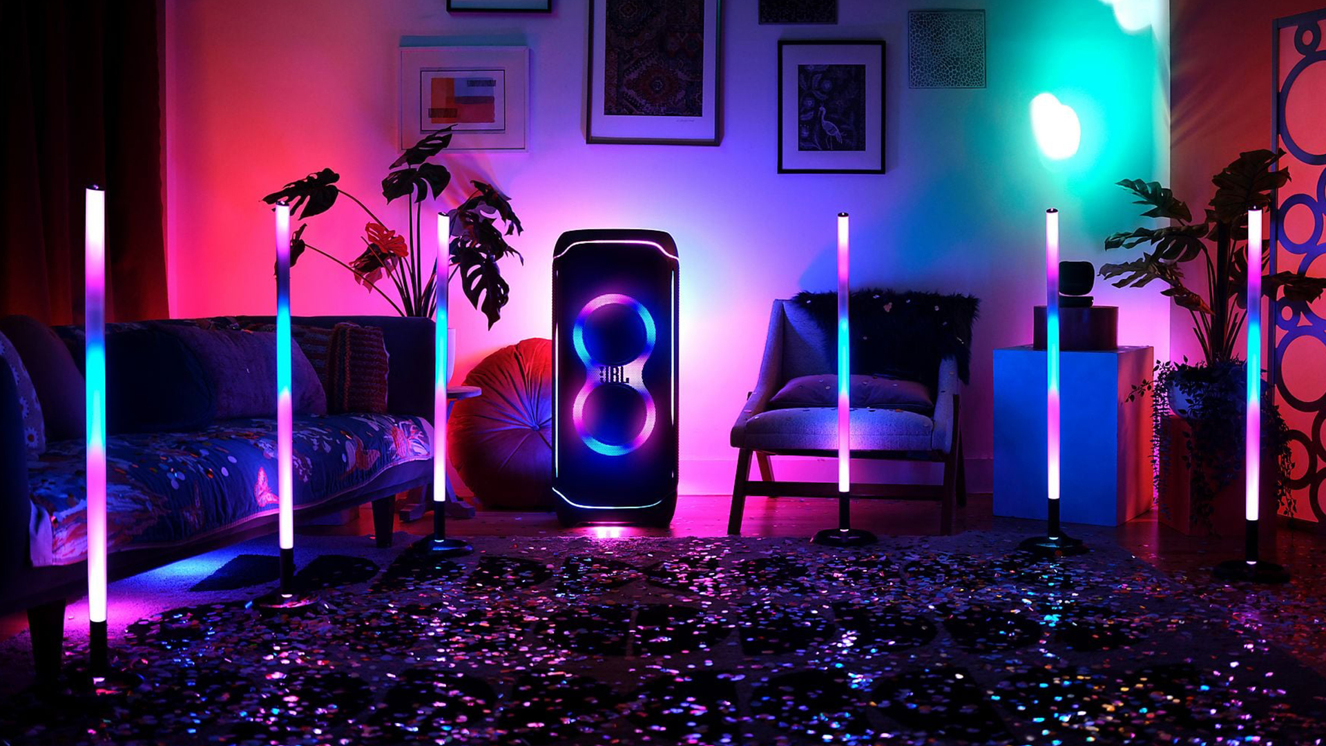 Besonders in Kombination mit einer kompatiblen JBL PartyBox entsteht ein stimmiges Gesamtbild aus Sound und Licht. Lautsprecher und Licht reagieren parallel auf die Musik, was dem Setup einen deutlich professionelleren Eindruck verleiht als einfache, rein lautstärkebasierte RGB-Lösungen.