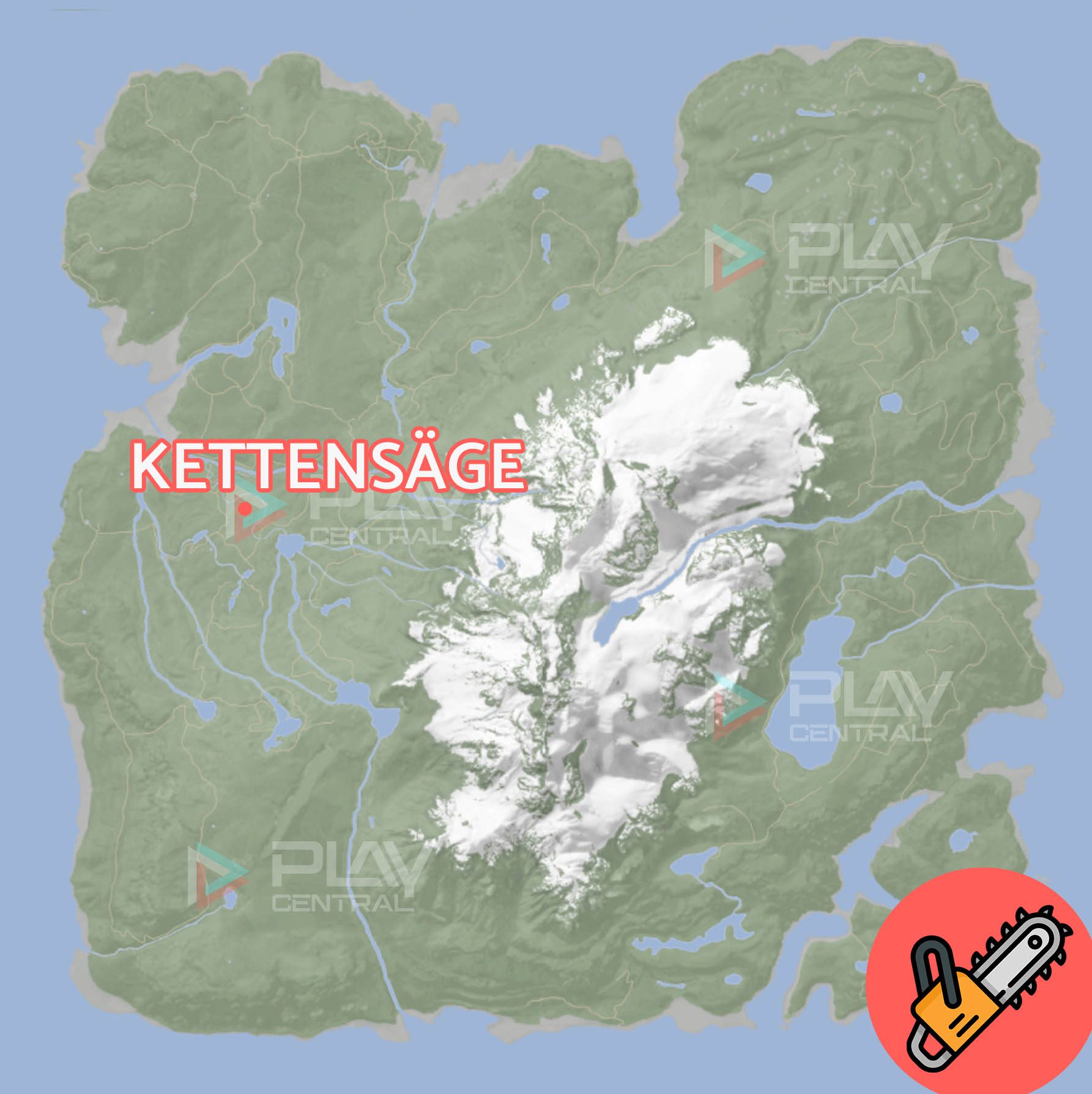 Auf der nachfolgenden Karte seht ihr schon einmal den Fundort der Kettensäge. Hier müsst ihr hin, wenn ihr sie sammeln möchtet. Aber Obacht! Dieser Spot kann nicht ohne Weiteres erreicht werden.