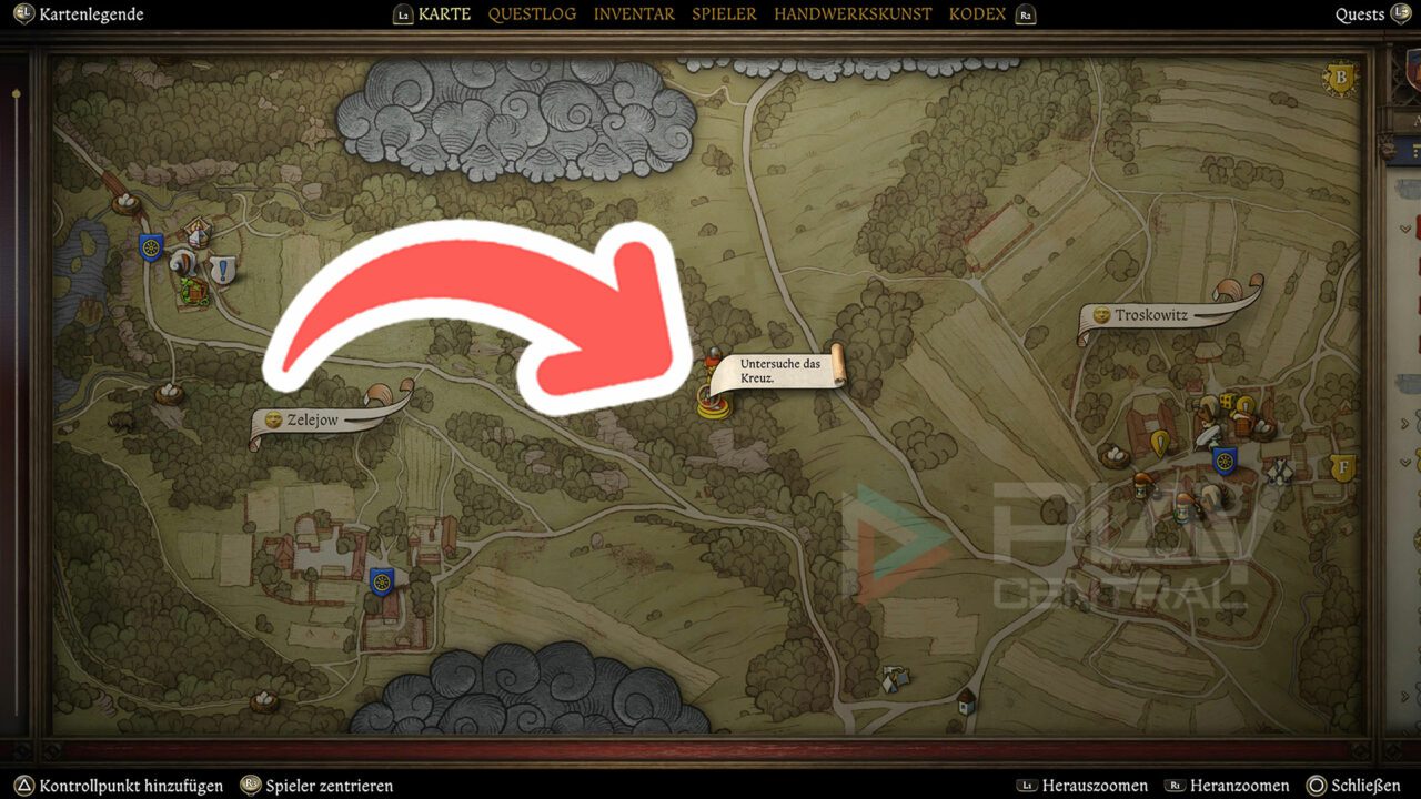 Schaut ihr euch in der Hütte aber genauer um, werdet ihr im Obergeschoss drei Mehlsäcke stehen sehen. Räumt diese zur Seite, um dahinter das Tagebuch von Konrad von Prag zu finden. Besonders interessant ist hier ein Eintrag ganz am Ende.
