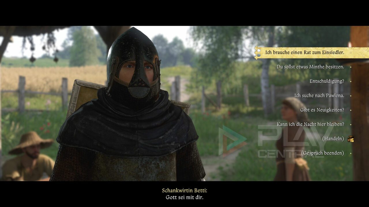 An dieser Stelle könnt ihr wählen, auf welche Seite ihr euch stellt. Helft ihr dem Betrüger oder den Männern vom Ritterorden?