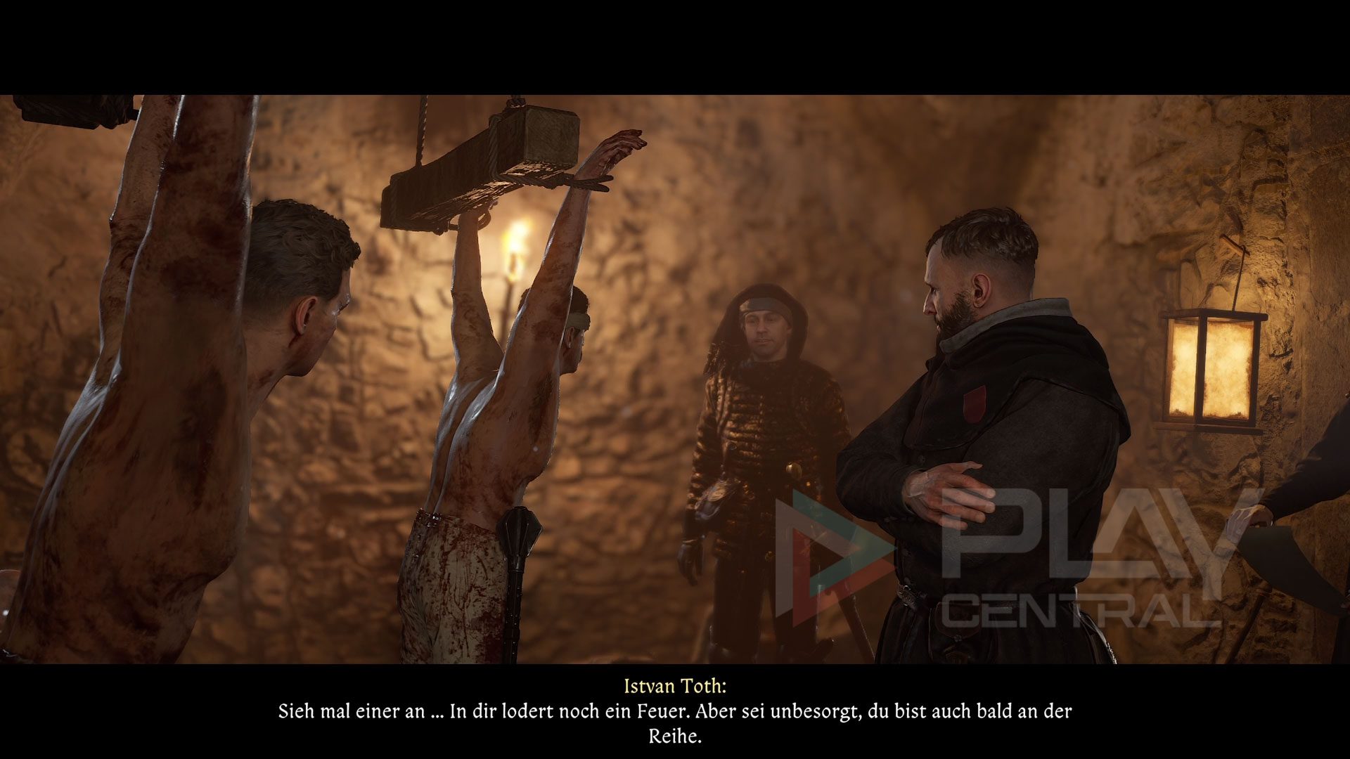Ihr kennt die Folterkammer auf Burg Trosky bereits aus der Mission Notwendiges Übel, dieses Mal steht (bzw. hängt!) ihr allerdings auf der anderen Seite. Sobald Istvan mit Zizka fertig ist, seid ihr an der Reihe.