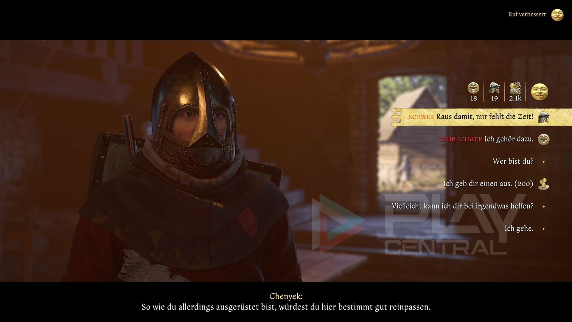 In der Kneipe weigern sich die Bürger, mit euch zu sprechen, und verweisen euch stattdessen darauf, zuerst mit Chenyek zu sprechen. Erst einmal solltet ihr ihn davon überzeugen, euch zu vertrauen, dafür stehen die folgenden Möglichkeiten zur Verfügung: