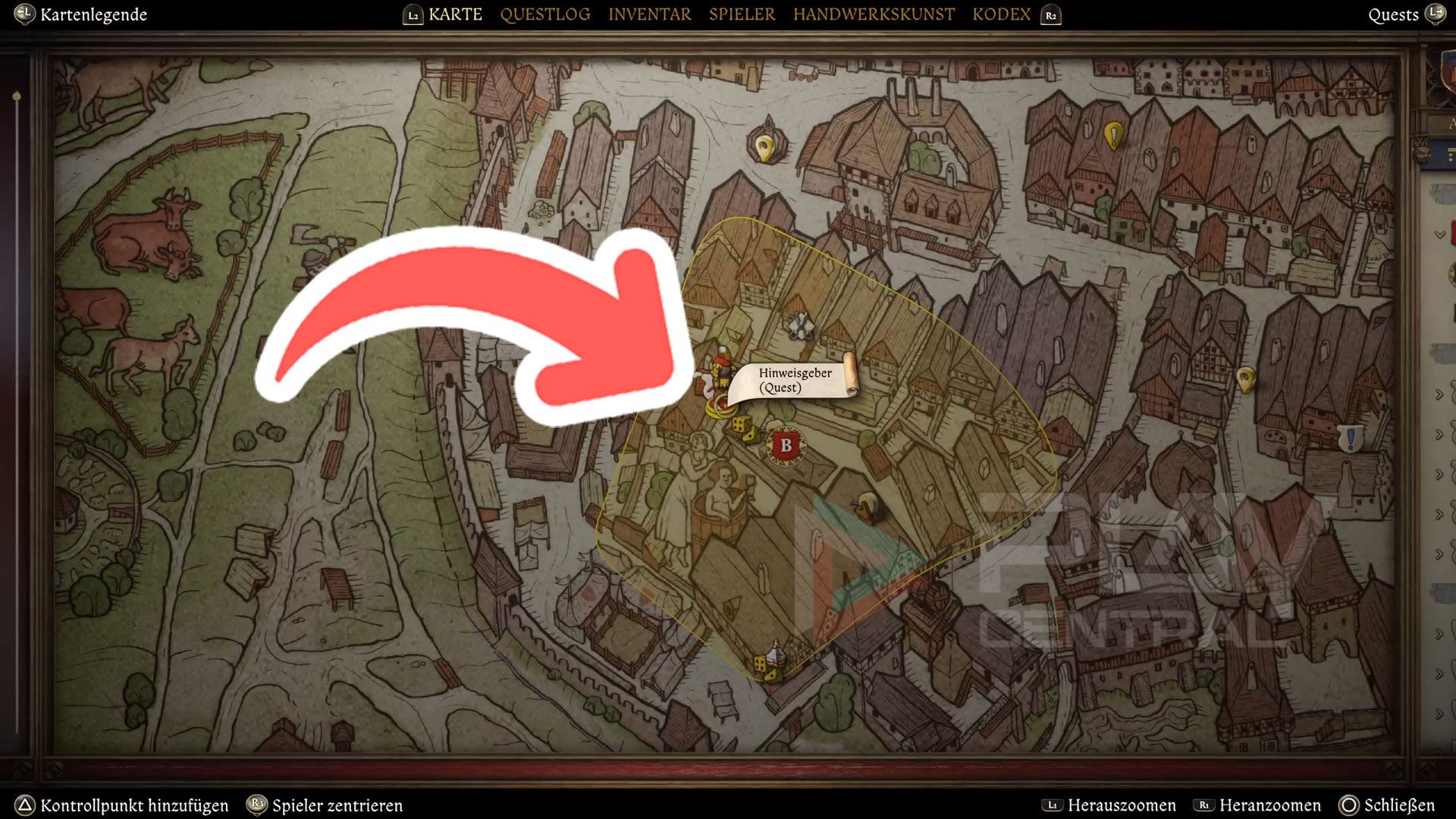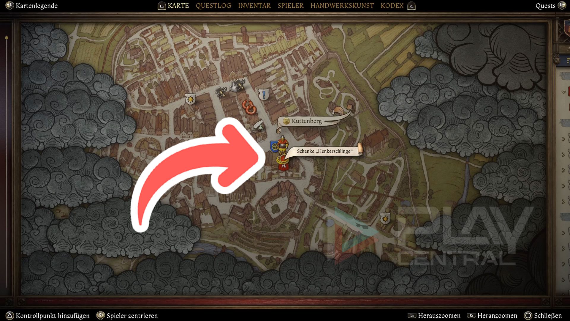 In Kuttenberg angekommen, solltet ihr euch als erstes auf die Suche nach Katharina machen. Ihr findet sie im östlichen Teil der Stadt in der Schenke Henkerschlinge.