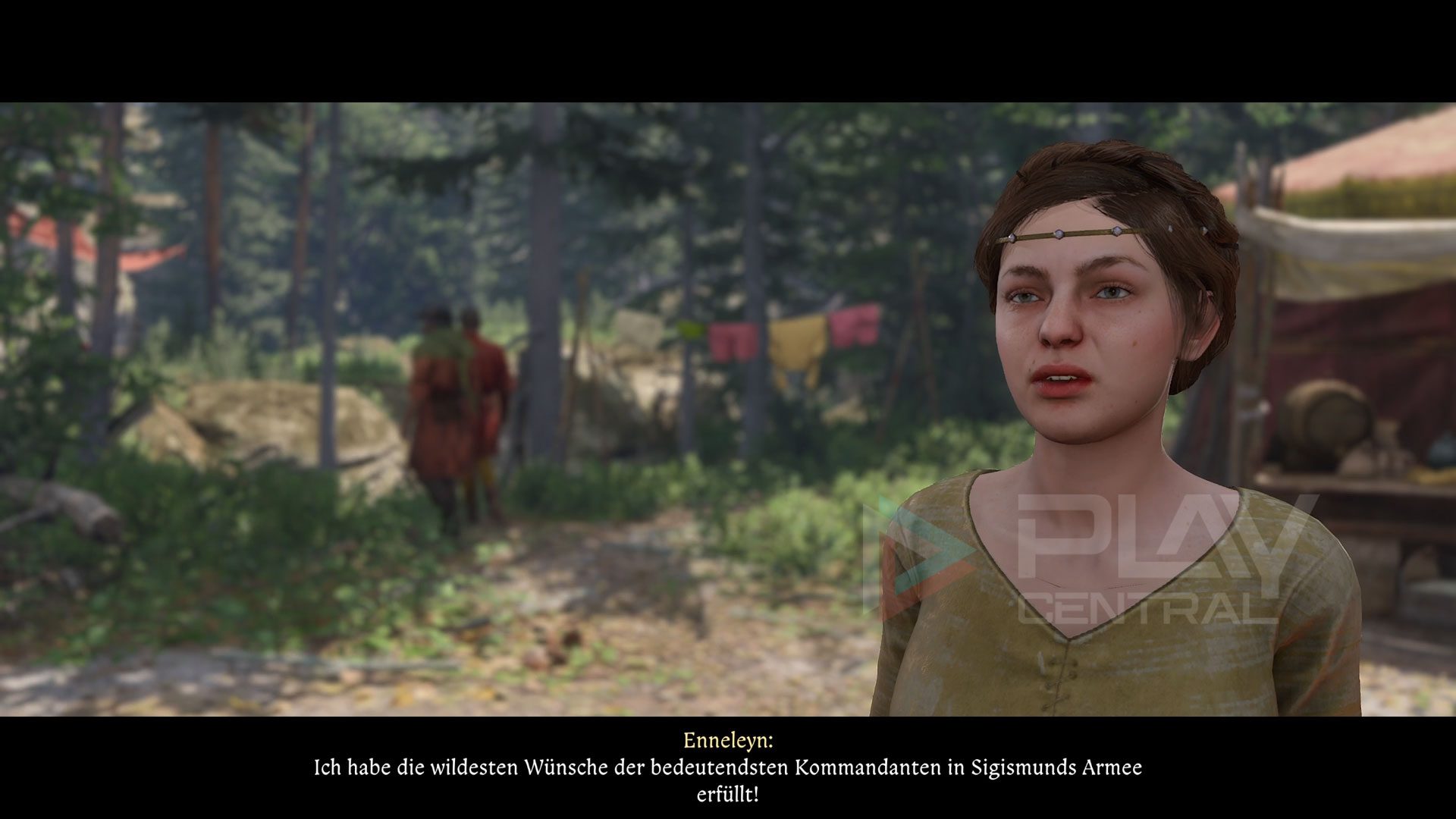 Reist also zu dem Lager und sprecht mit der etwas hochnäsigen Dame. Mit ein wenig Überredungskunst willigt Enneleyn schließlich ein. Erzählt ihr vor allem, dass sich die Mädchen vom Badehaus geweigert haben, den Kämmerer zu begleiten. Das spornt ihren Ehrgeiz und ihr Interesse so richtig an!