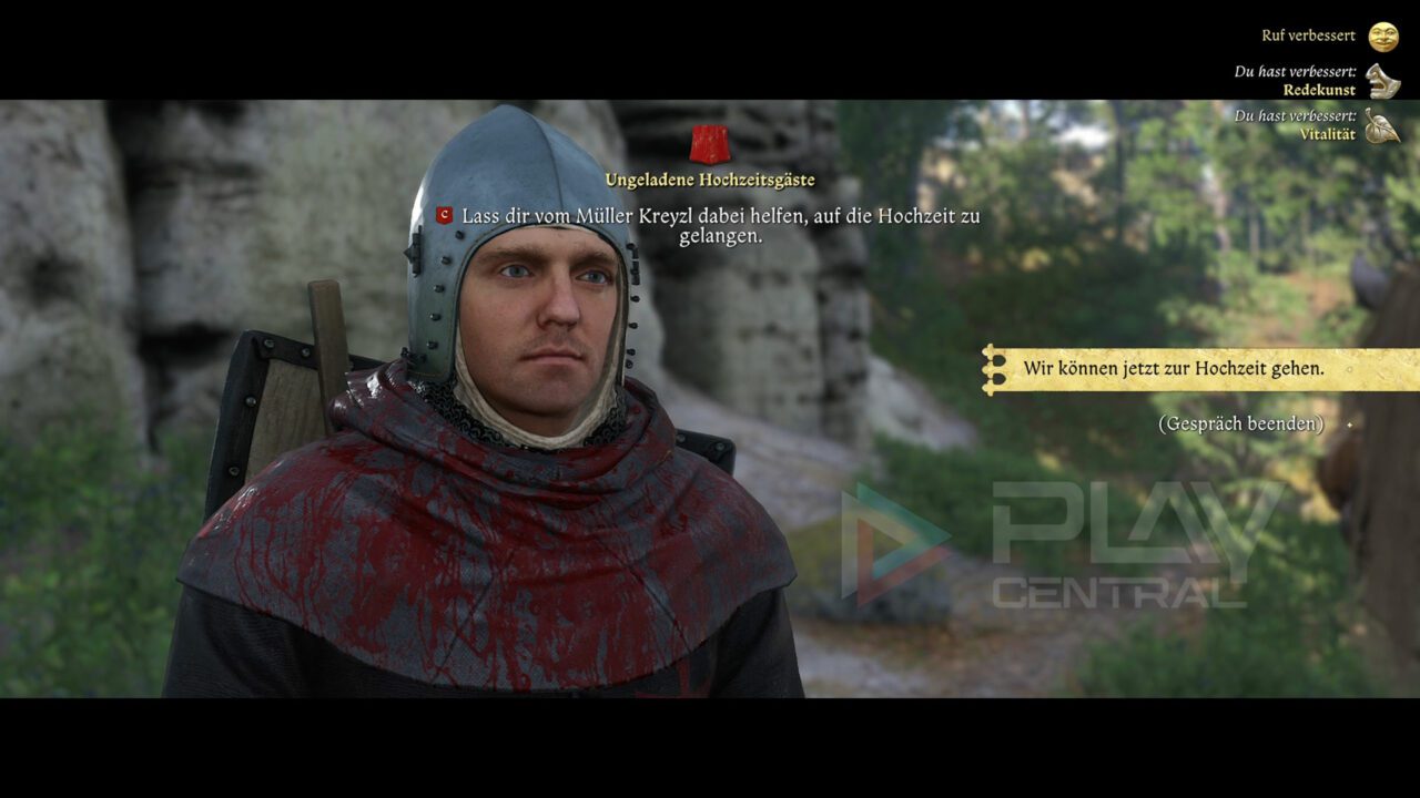 Sobald ihr euch auf der Hochzeit befindet, ist die Nebenquest Magnum Opus erst einmal pausiert und es geht mit der Hauptmission Ungeladene Hochzeitsgäste weiter. Nachdem die Feier allerdings im Chaos endet, finden sich Hans Capon und Heinrich im Kerker von Burg Trosky wieder.