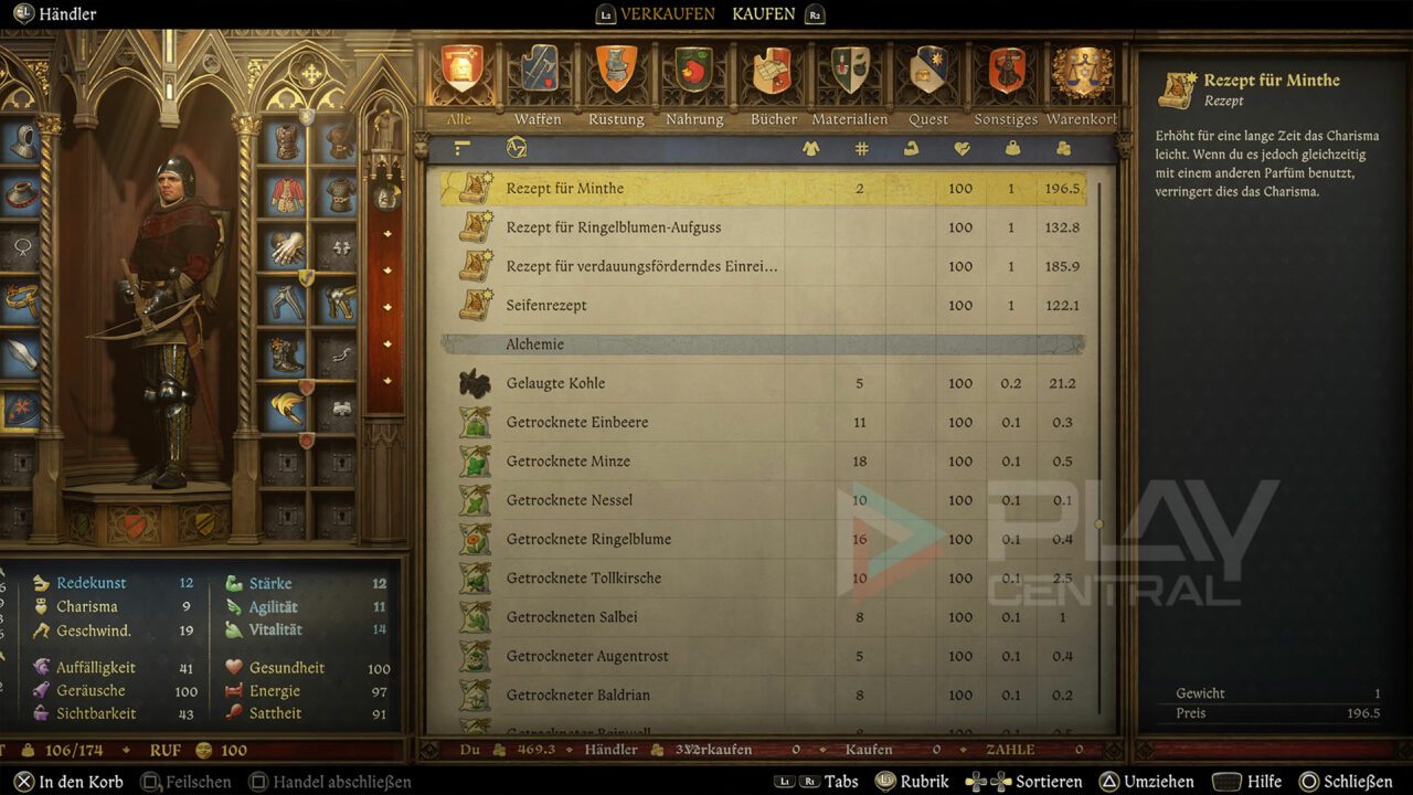 Besucht Emmerich und tatsächlich, der Apotheker verkauft das Rezept für Minthe, allerdings ist dieses nicht ganz günstig (196,5 Groschen). Alternativ könnt ihr es ihm auch stehlen.