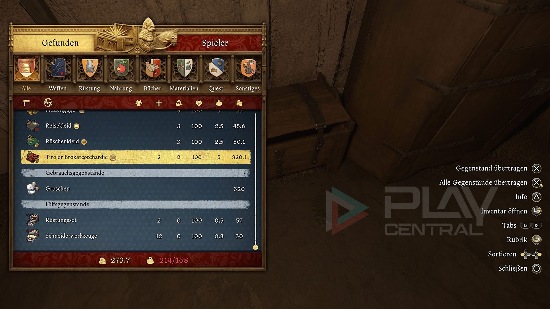 Wartet danach bis zur Nacht und betretet dank des Schlüssels den Laden. Links neben der Theke steht die Truhe, in der sich zahlreiche Kleider und Zubehör befindet. Nehmt mit, was ihr tragen könnt und vor allem das Tiroler Brokatcotehardie.