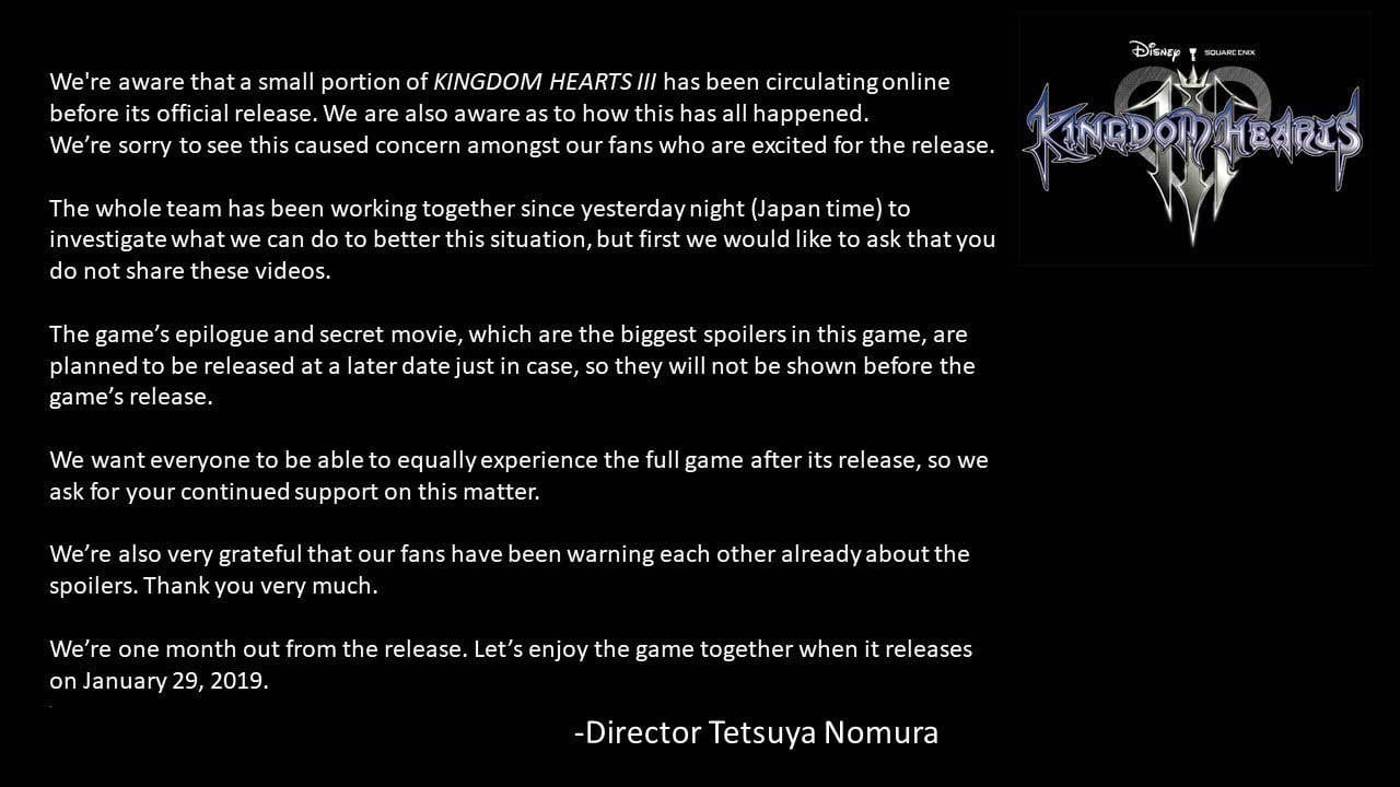 Am vergangenen Wochenende haben wir darüber berichtet, dass anderthalb Monate vor Release Kopien zu Kingdom Hearts 3 gestohlen und das gesamte Spiel geleakt wurde.
