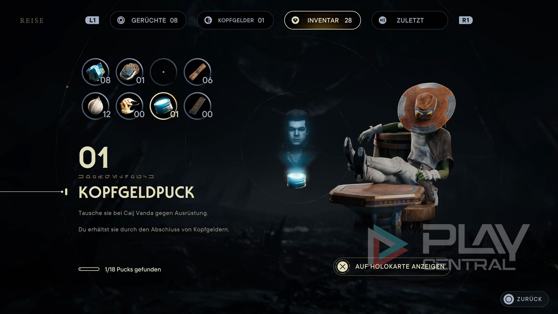 Diese Questreihe schaltet ihr automatisch in Kapitel 3 frei, sobald ihr das erste Mal auf Caij getroffen seid. Fortan werdet ihr sie in der Cantina treffen können. Hier könnt ihr von Caij neue Hinweise zu den Kopfgeldjägern erhalten und gegen Pucks neue Gegenstände erwerben.