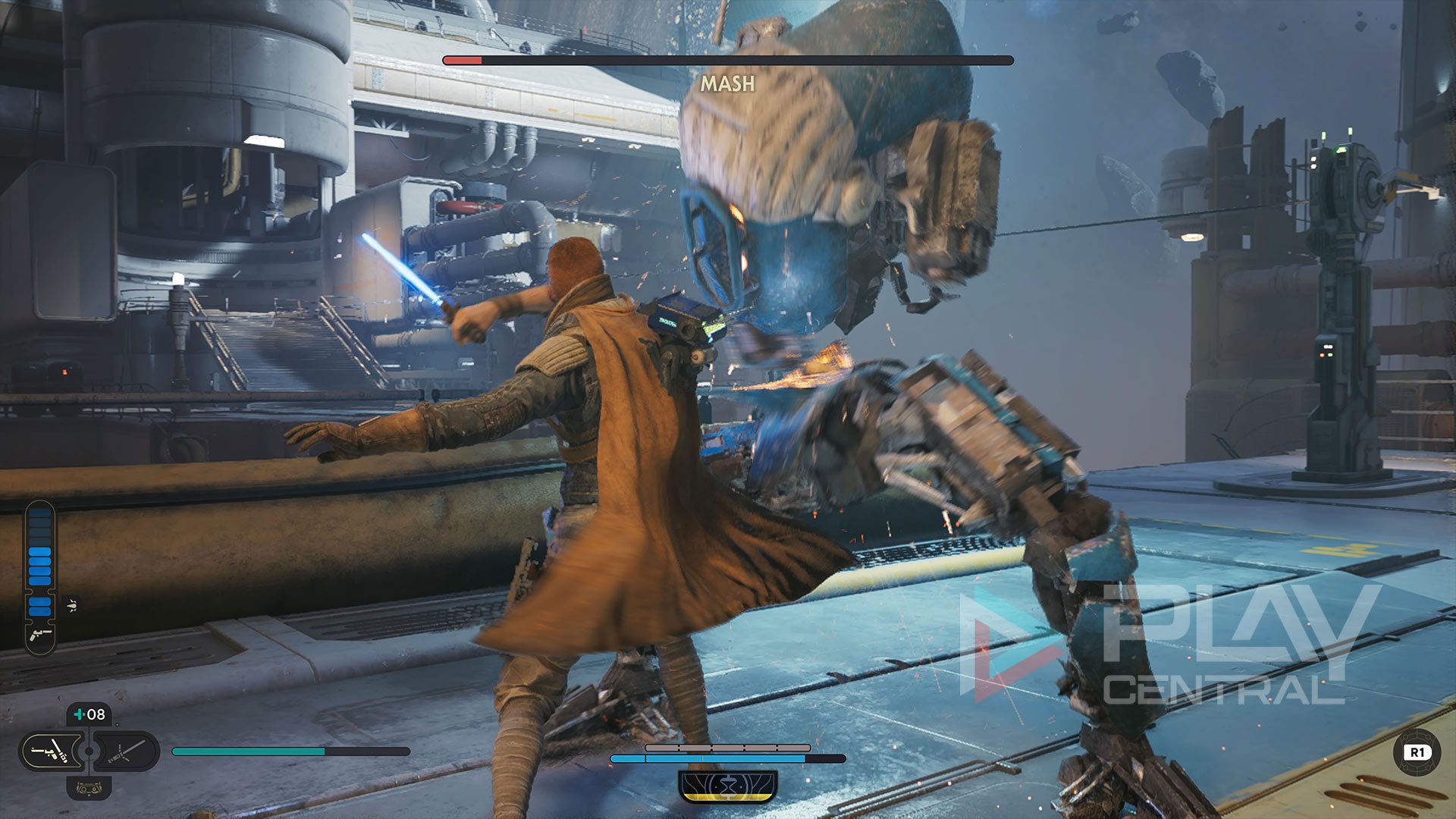 Mash ist stämmig sowie schwer und versucht Cal mit heftigen Angriffen ins virtuelle Jenseits zu schicken. Haltet am besten Abstand und kümmert euch erst einmal um seinen Verbündeten. Versucht Mash am besten in den Rücken zu fallen und bleibt mobil, dann wird er euch kaum zu packen kriegen.