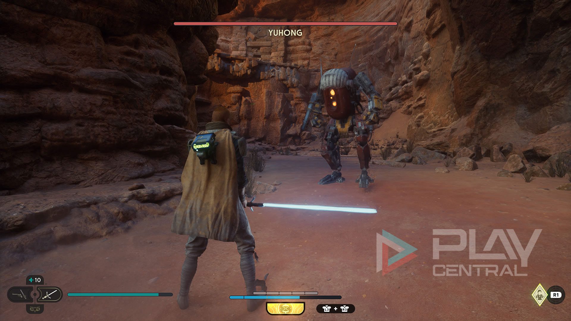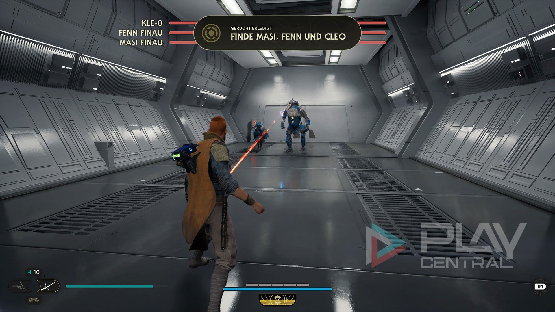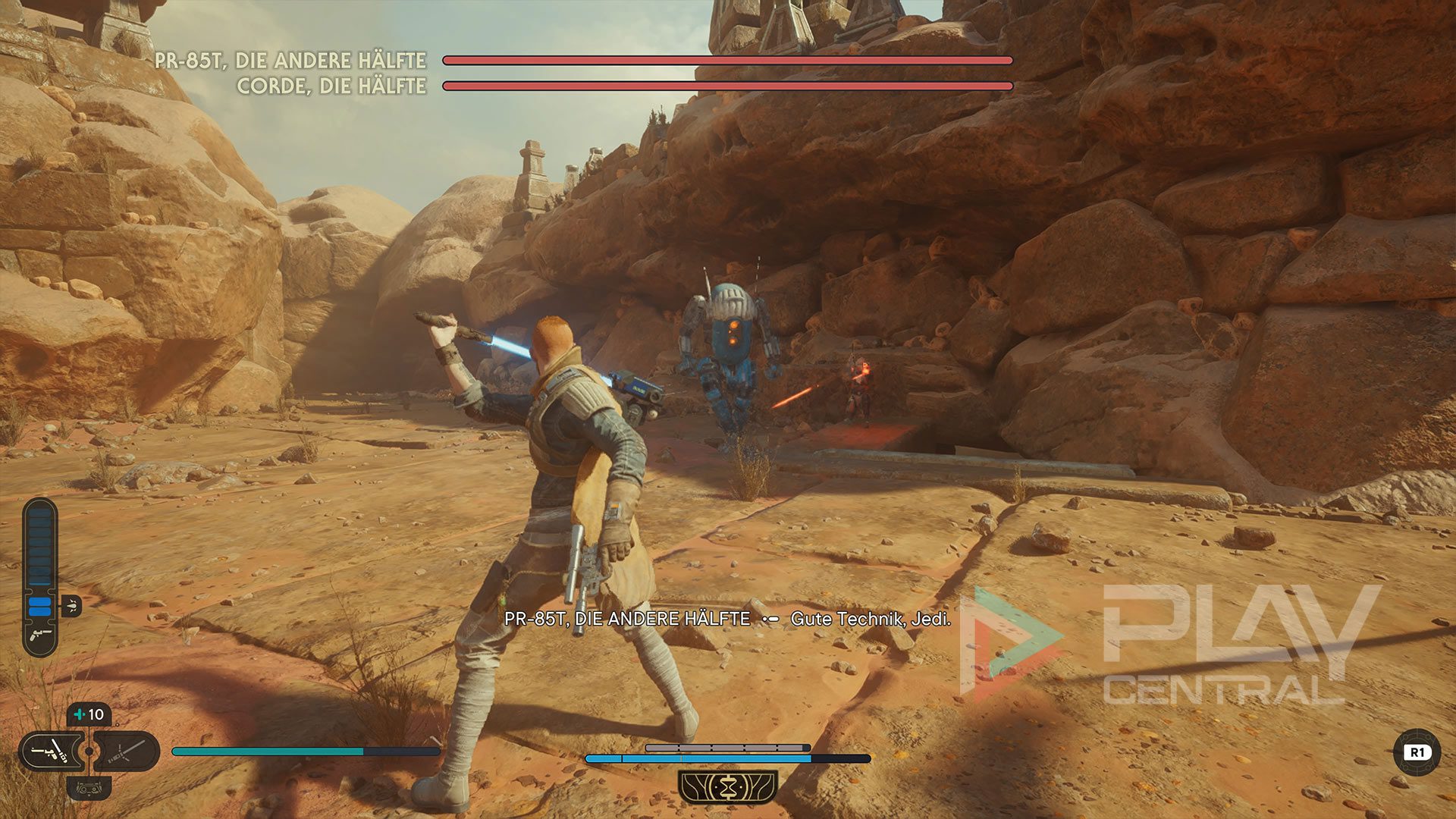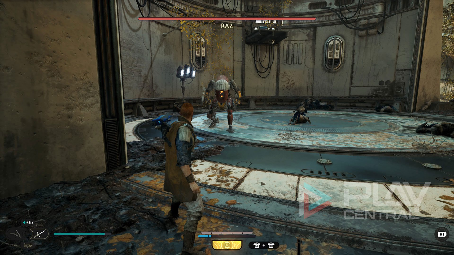 Bei Raz handelt es sich um einen Kampfdroiden, bei dem ihr besser etwas vorsichtiger an die Sache geht. Schließlich ist dieser Kollege schwer gepanzert und mit mit einem übertriebenen Selbstbewusstsein programmiert. Weicht am besten seinen Sturmangriffen aus, um die Chance auf einen Angriff von hinten zu erhalten. Lass euch am besten selbst nicht treffen, aber dieses Prinzip gilt wohl bei allen Gegnern.