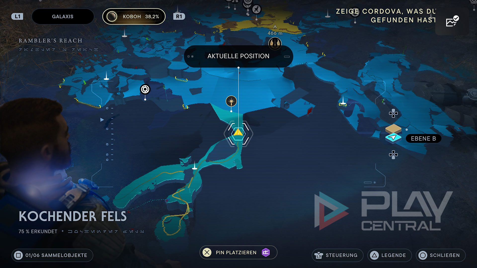 Wo zu finden? Sobald ihr alle 16 Kopfgeldjäger erfolgreich erledigt habt, kehrt in die Cantina im Außenposten von Koboh zurück. An dem Platz, an dem ihr bislang auf Caij gestoßen seid, liegt jetzt nur ein Datapad mit einer Nachricht für Cal: „Hey Killer, triff mich, wo alles begonnen hat. Ich habe eine Überraschung für dich“.