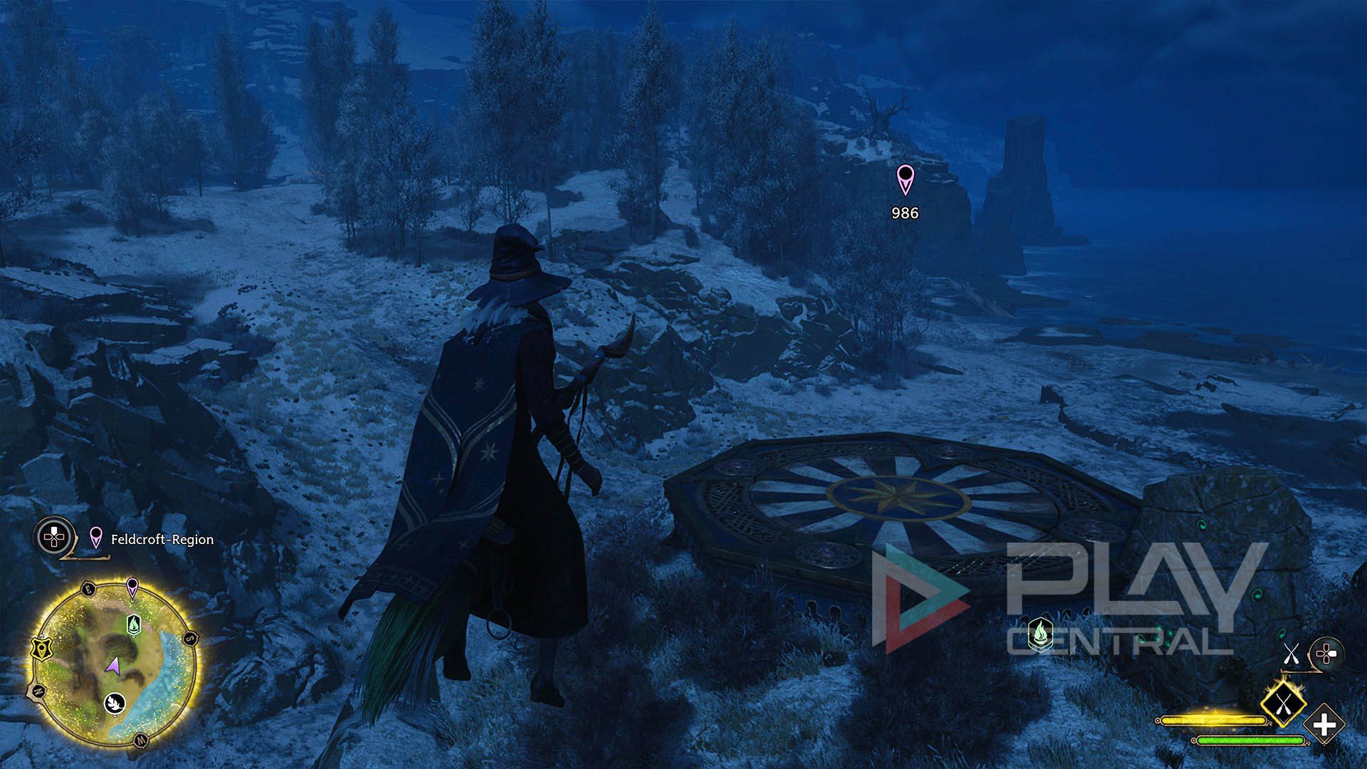 Weiter geht es im Osten von Feldcroft selbst, also dem Dorf. Fliegt gerade gen Osten, bis ihr zu einer Ruine kommt. Die Plattform befindet sich in der Ruine selbst.