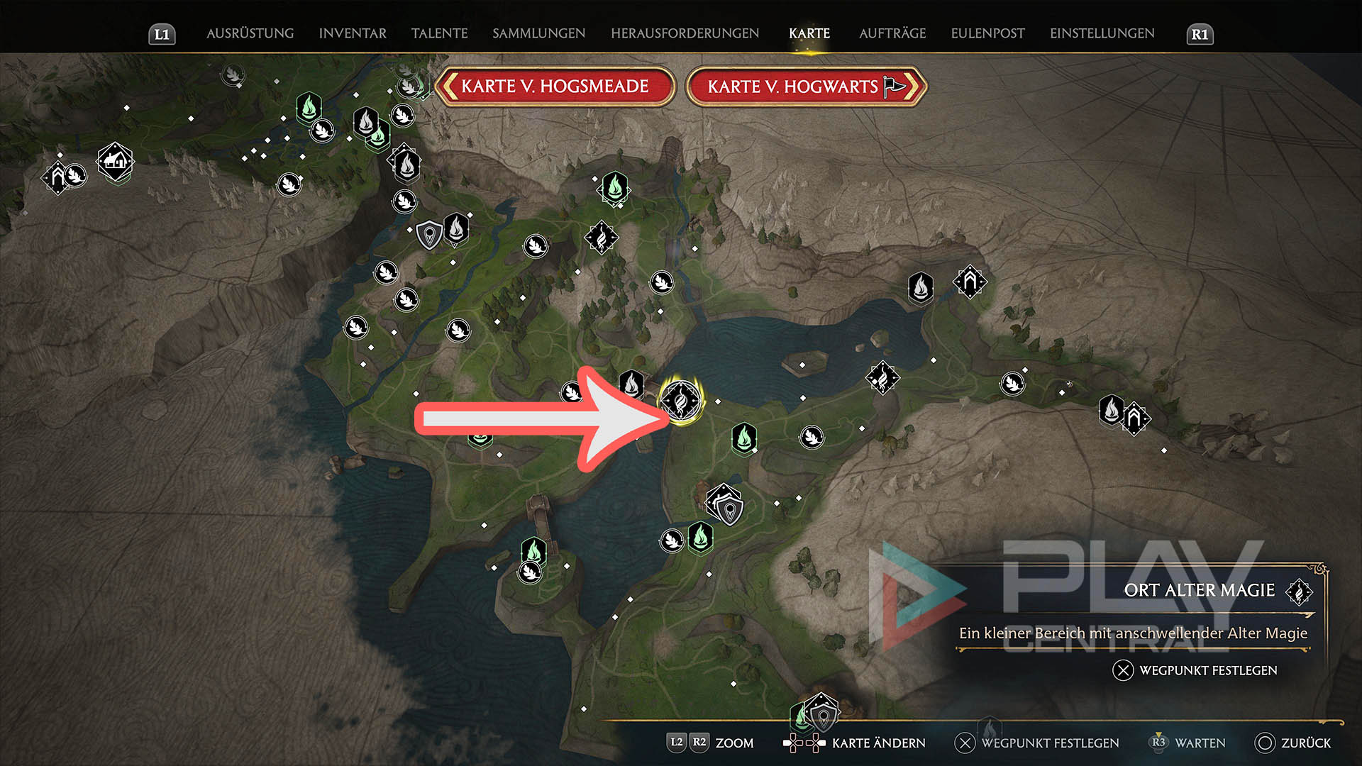 Die eine Plattform am Marunweem-See liegt am rechten, unteren Teil der Marunweem-Brücke. Das ist die Brücke, mit der ihr zum See gelangt. Spawnt einfach beim Flohpunkt Marunweem-Brücke. Fliegt dann kurz ans andere Ende. Das Metallobjekt sitzt oben am Brückenende neben dem Ort alter Magie.