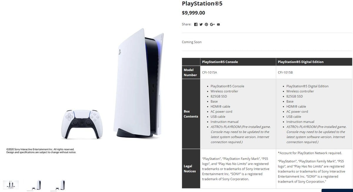 Bei den 9.999 US-Dollar, die von dem Distributor angegeben werden, handelt es sich natürlich um einen Platzhalter. Derzeit wird spekuliert, dass die PS5 499 Euro und die Digital Edition 399 Euro kosten werden. Wahrscheinlich werden wir am kommenden Mittwoch diesbezüglich endlich offizielle Informationen seitens Sony erfahren, womit die monatelangen Spekulationen ein Ende haben werden.