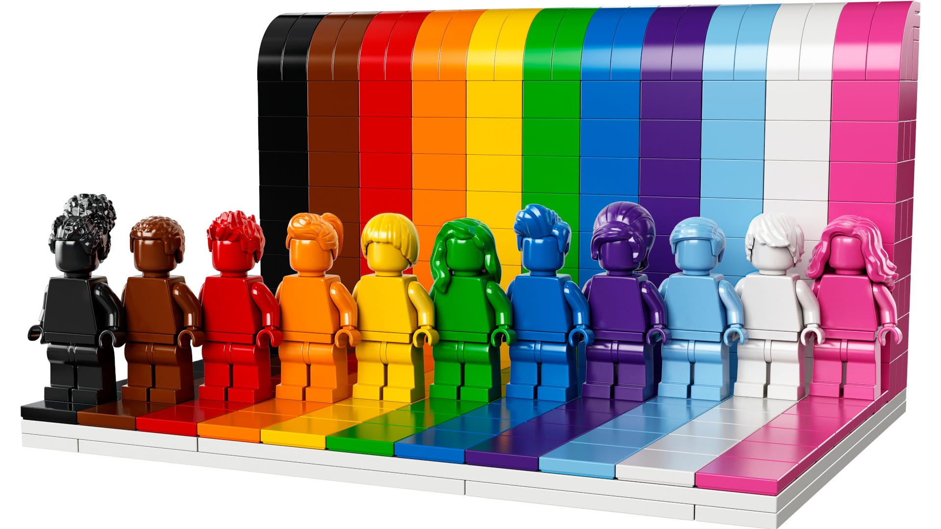Damit setzt das Unternehmen ein Zeichen für Diversität und Zusammenhalt: Die Regenbogenfarben der monochromen Minifiguren stehen nämlich für die LGBTQIA+ Community.