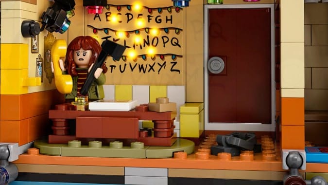 Ganz LEGO-typisch ist in dem „Stranger Things“-Set alles dabei, was das Fanherz begehrt. Besonders, wenn man etwas genauer hinschaut. So besitzt das Modell die ikonische Alphabet-Wand mit Leuchtfunktion, die Flugblätter mit dem Vermissten-Aufdruck und sogar die Bärenfalle für den Demogorgon! Ebenfalls dabei ist das Regelbuch für DnD und der Zauberhut von Will, dem Weisen samt passender Porträtzeichnung.