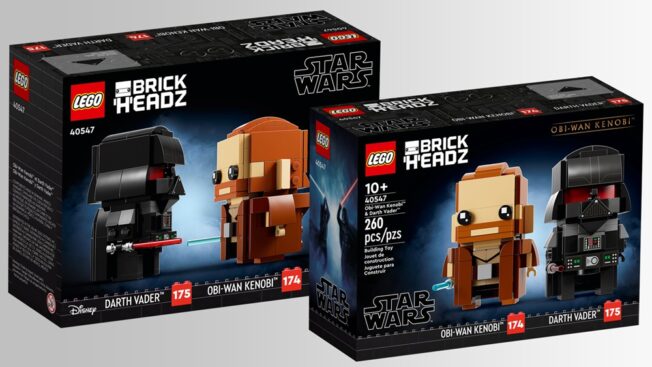 Den vielleicht niedlichsten Darth Vader der LEGO-„Star Wars“-Kooperation bietet das BrickHeadz-Set Obi-Wan Kenobi & Darth Vader mit der Seriennummer 40547.