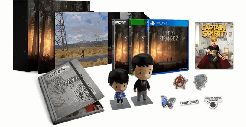 Die Collector’s Edition enthält das komplette Hauptspiel sowie die Sidestory „The Awesome Adventures of Captain Spirit“. Zudem finden sich Figuren von Sean und Daniel in der Sammlerbox. Ein Soundtrack und Artbook sowie Arcadia Bay-Patches für Seans Rucksack runden das Gesamtpaket ab.