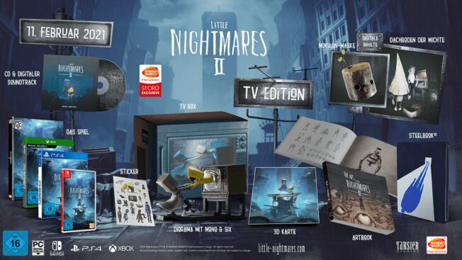Digitale Inhalte können unter littlenightmares.com heruntergeladen werden. Hierfür muss ein Konto erstellt werden. Die TV-Edition ist bei teilnehmenden Händlern erhältlich, solange der Vorrat reicht.