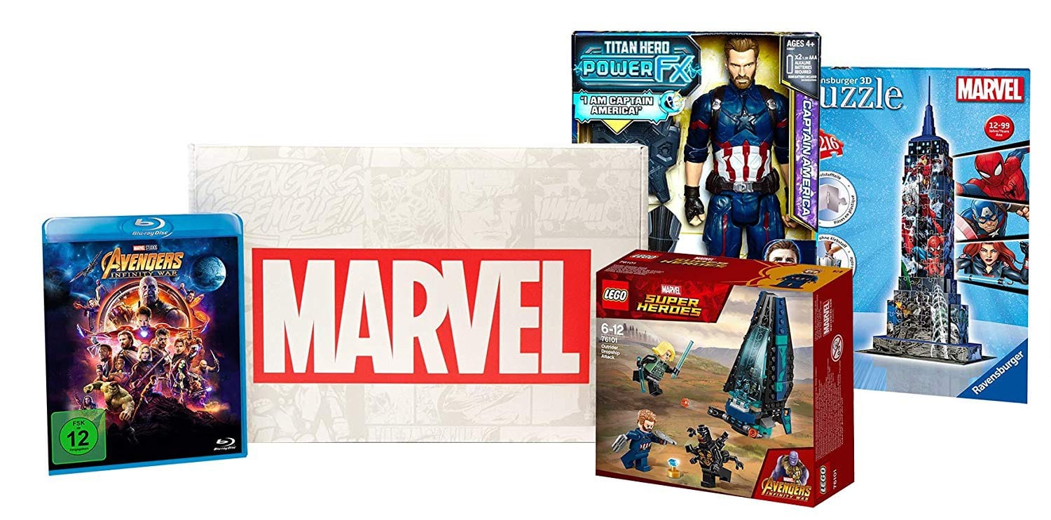 Die Box ist gut gefüllt und lässt die Herzen von Marvel-Fans sicher höherschlagen. Lego, Hasbro und Ravensburger sind bei den Fanartikeln vertreten und für den Kinospaß zu Hause gibt es die „Avengers: Infinity War“-Blu-ray obendrauf.