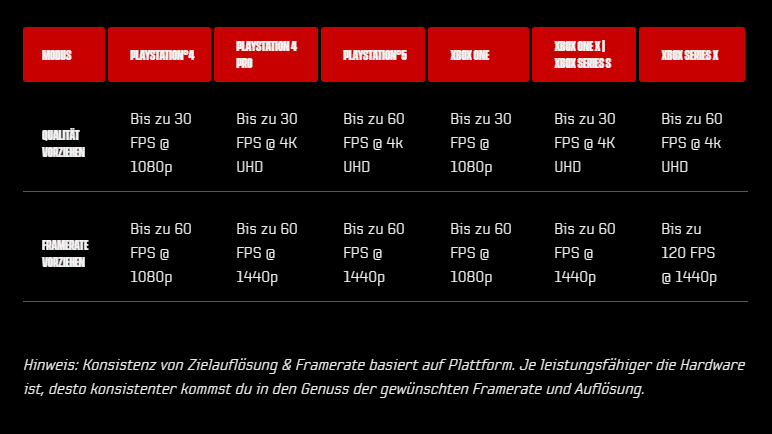 - PS5: bis zu 60fps bei 1440p und 4k UHD
