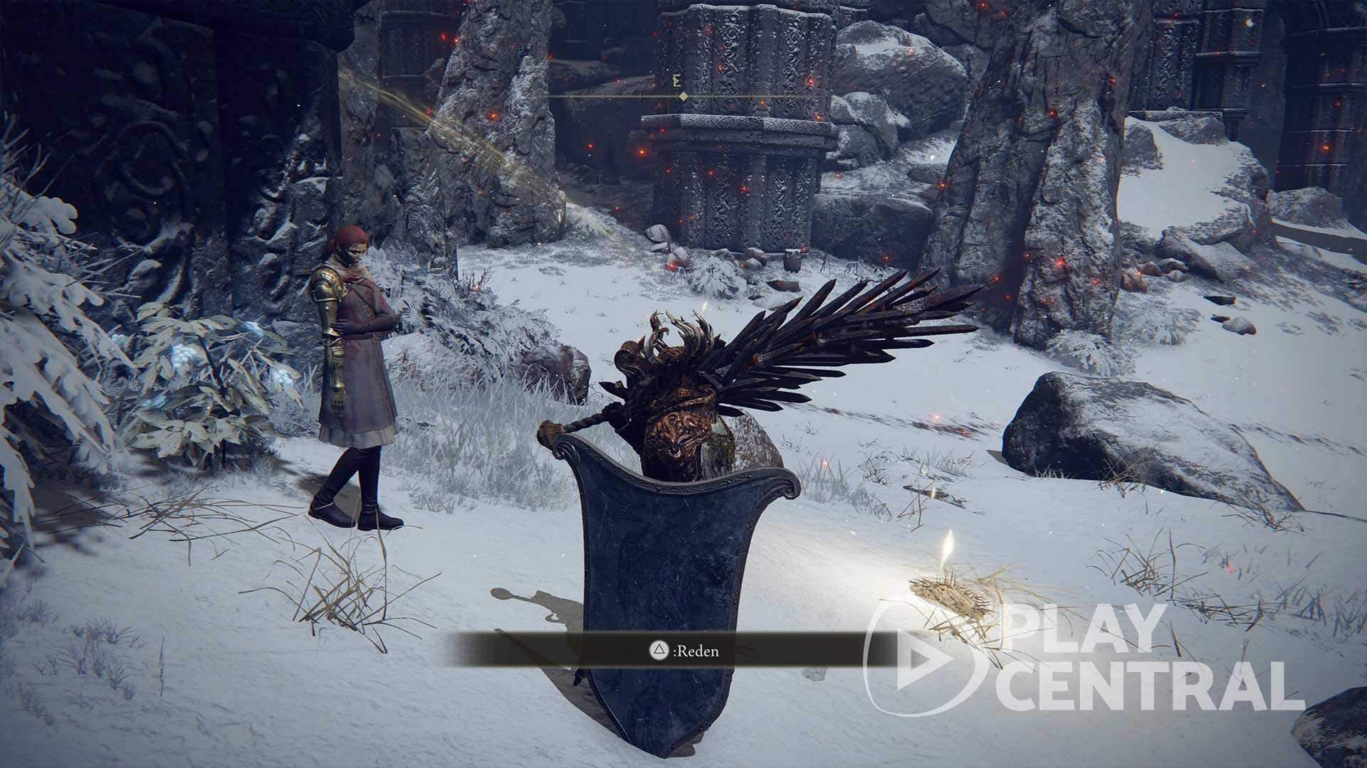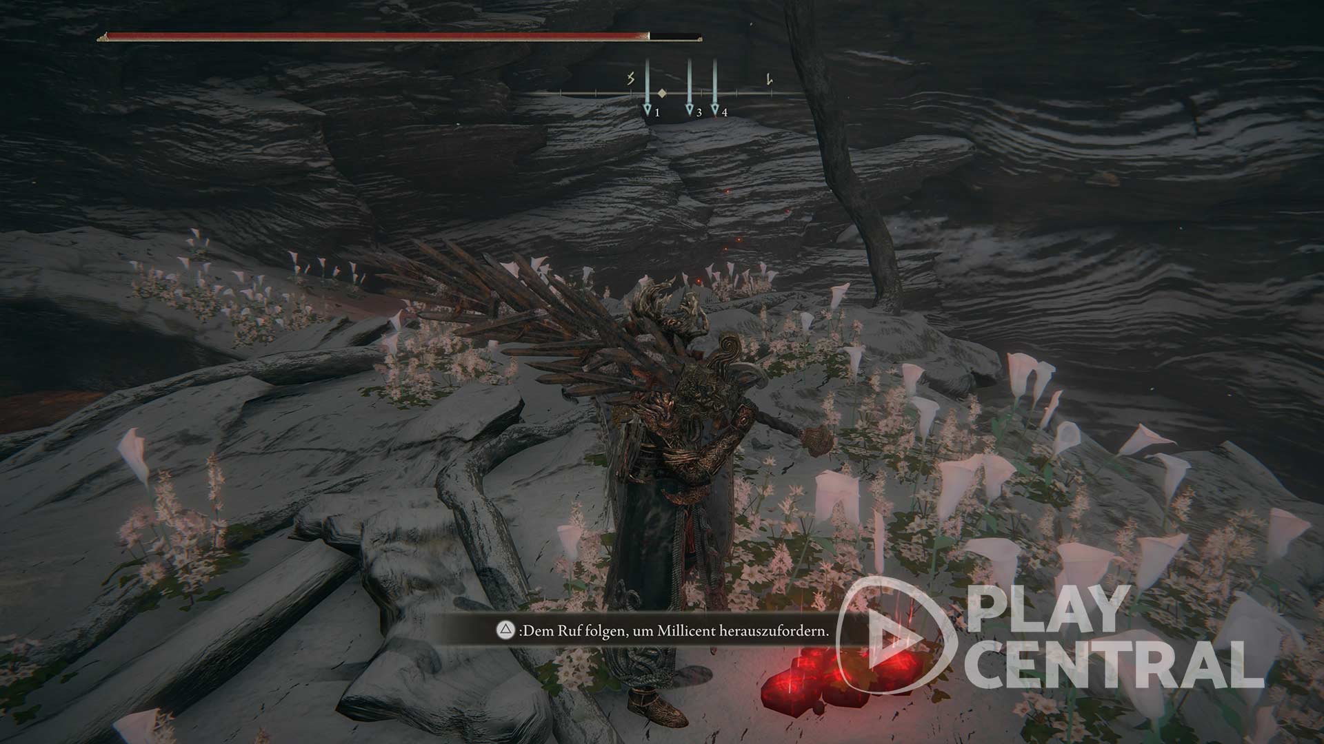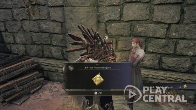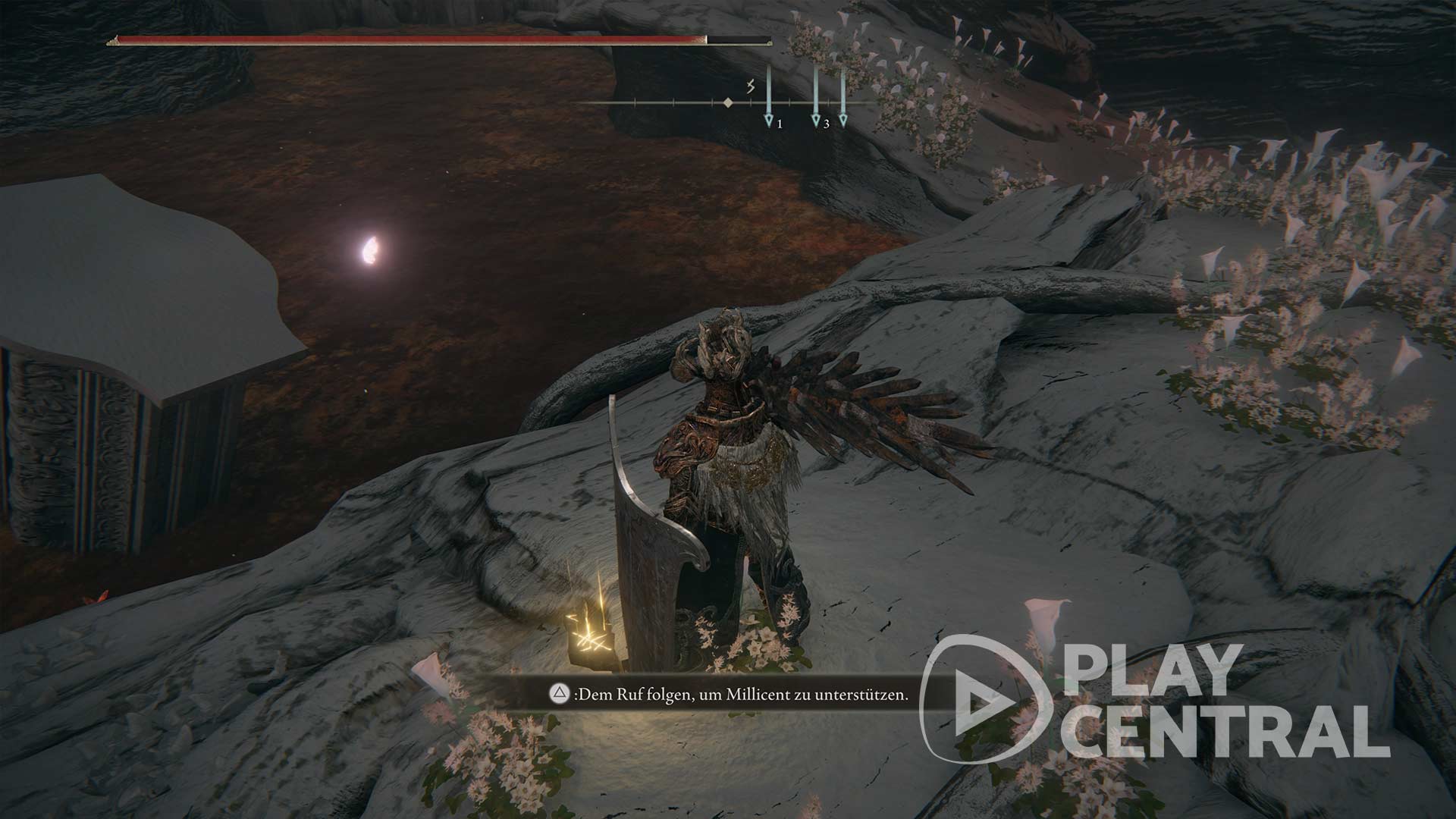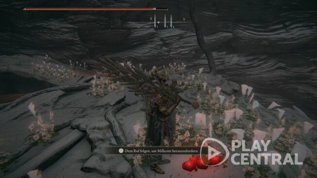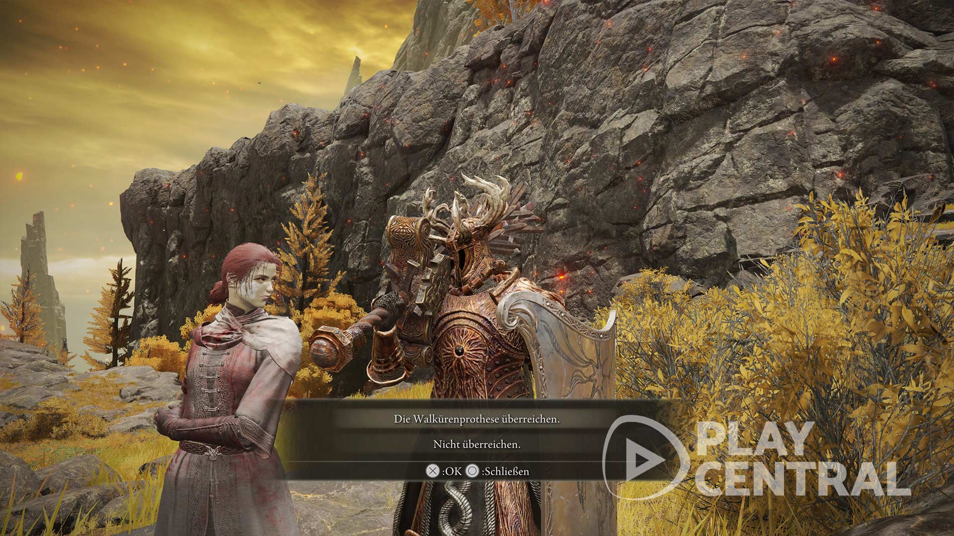 Wenige Meter entfernt an der Klippe könnt ihr erneut mit der Frau sprechen. In dem Dialog teilt sie euch mit, dass sie auf der Suche nach Malenia ist. Allerdings fehlt ihr etwas wichtiges, ohne das sie nicht weiterreisen könne.