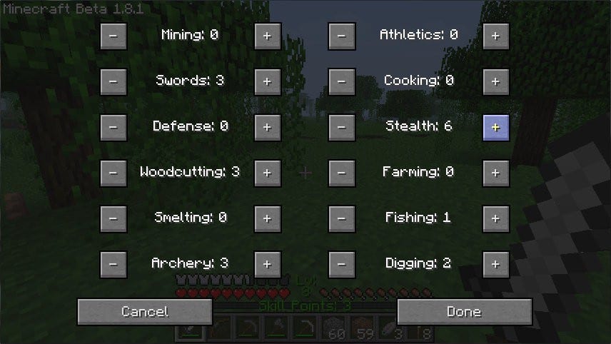 Level Up RPG Skills Mod für Minecraft 1.8