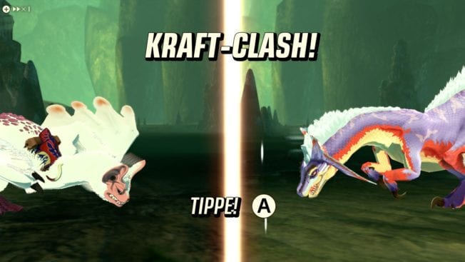 Die Rundenkämpfe funktionieren prinzipiell nach demselben Prinzip wie im 3DS-Vorgänger, das mit „Stein, Schere, Papier“ am besten umschrieben ist. Konkret zündet ihr und die gegnerischen Monster verschiedene Attacken aus den Bereichen Kraft, Technik und Geschwindigkeit. Die Kraft ist immer der Technik überlegen, die Technik immer der Geschwindigkeit und die Geschwindigkeit der Kraft. Ob logisch oder nicht: ein eingängiger Mechanismus, bei dem wir allerdings bis zum Schluss immer einen Merkzettel neben uns liegen hatten.