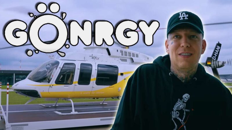 Es wäre nicht MontanaBlack, wenn er einfach nur zu seinen Produzenten fahren, die Getränke testen und wieder heimgehen würde. Für dieses Video und zum baldigen Start der Getränke-Reihe, wurde ein Helikopter mit dem Gönrgy-Logo versehen.