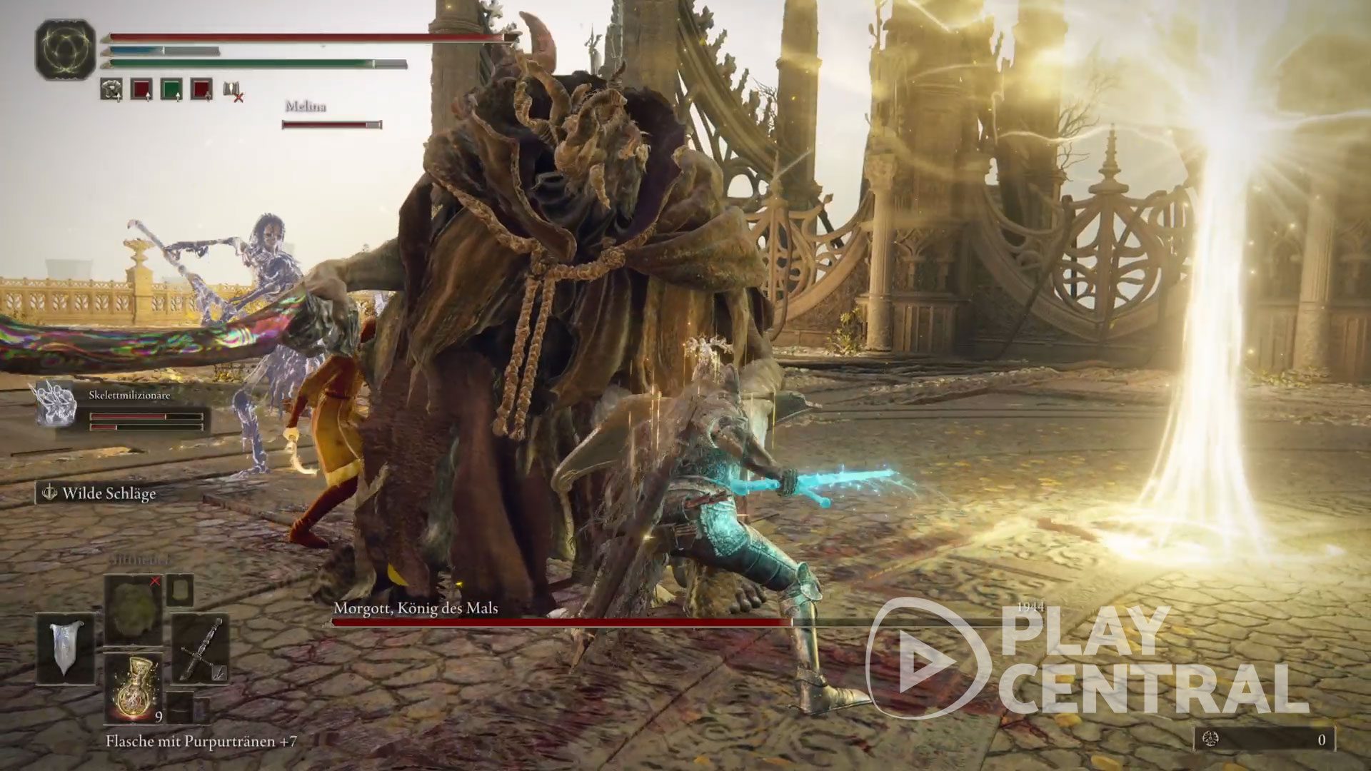 Alles in allem ist der Kampf zwar nicht ohne, mit den beschriebenen Hilfsmitteln und einem hochstufigen Charakter aber dennoch recht gut machbar. Viele der Angriffe von Morgott sind zwar ziemlich mächtig, aber auch gut voraussehbar. Ihr solltet euch vor allem vor seinen Nahkampfangriffen in Acht nehmen und euch merken, in welche Richtung ihr wann ausweichen müsst.
