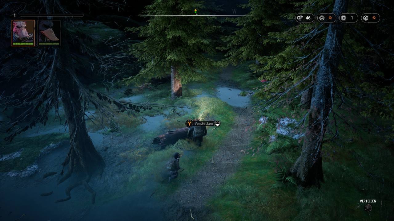 Doch stoßen wir auf Feinde, zeigt uns eine rote Kreismarkierung an, ab wann uns die Gegner bemerken und angreifen. Diese Design-Entscheidung erweist sich im Kampf von unschätzbarem Wert, da wir so besser unser Vorgehen planen und unsere unfreiwilligen Helden in Position bringen.