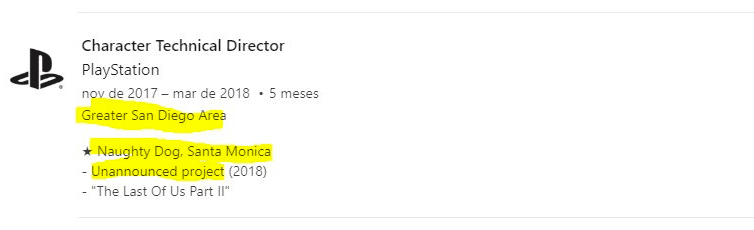 Möglicherweise arbeitet Naughty Dog neben The Last of Us Part 2 derzeit an einem weiteren Projekt, das bisher jedoch noch nicht angekündigt worden ist. Die entsprechenden Hinweise zu dieser Vermutung lieferte das LinkedIn-Profil des Character Technical Director Keridan Elliott.