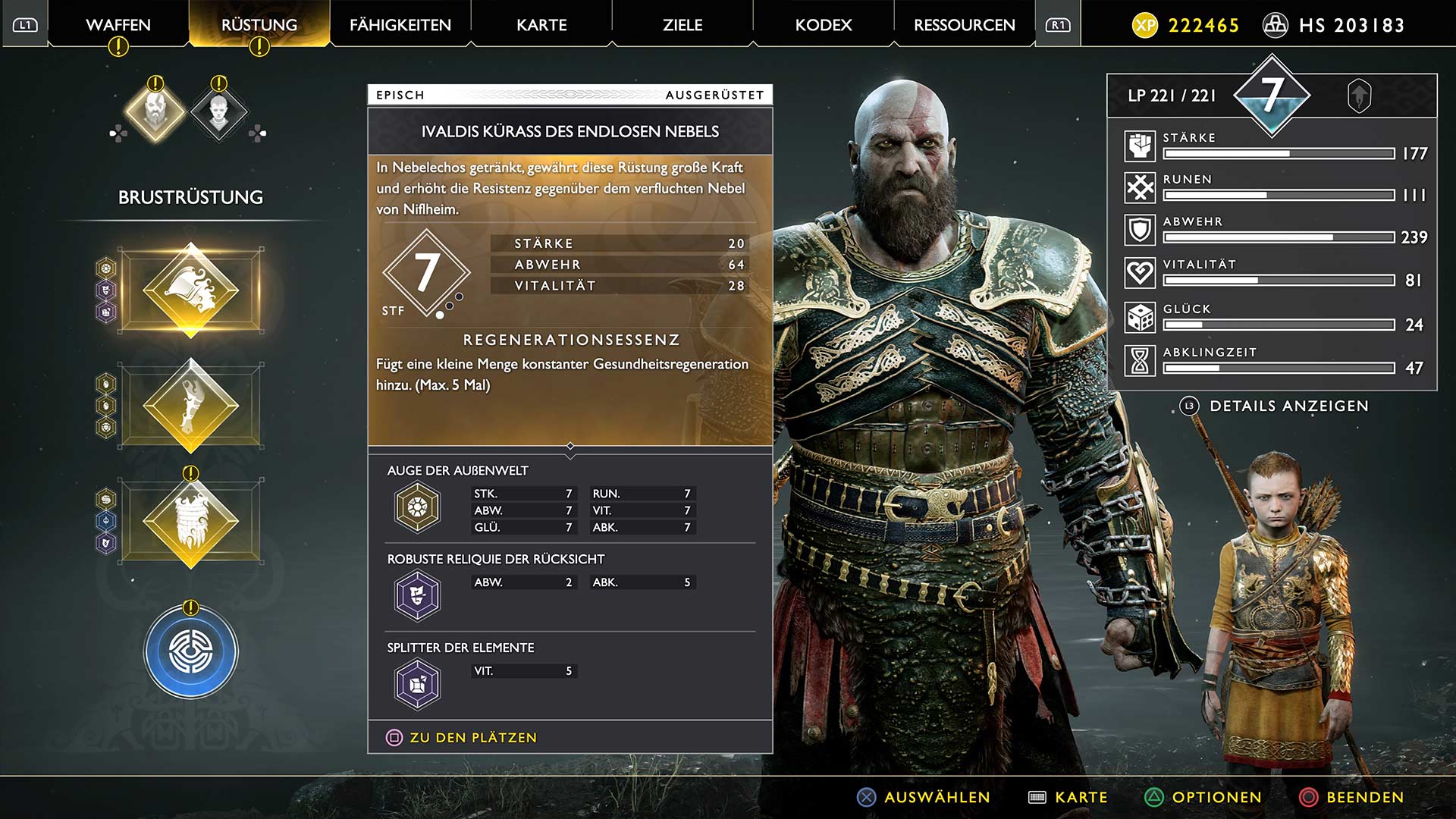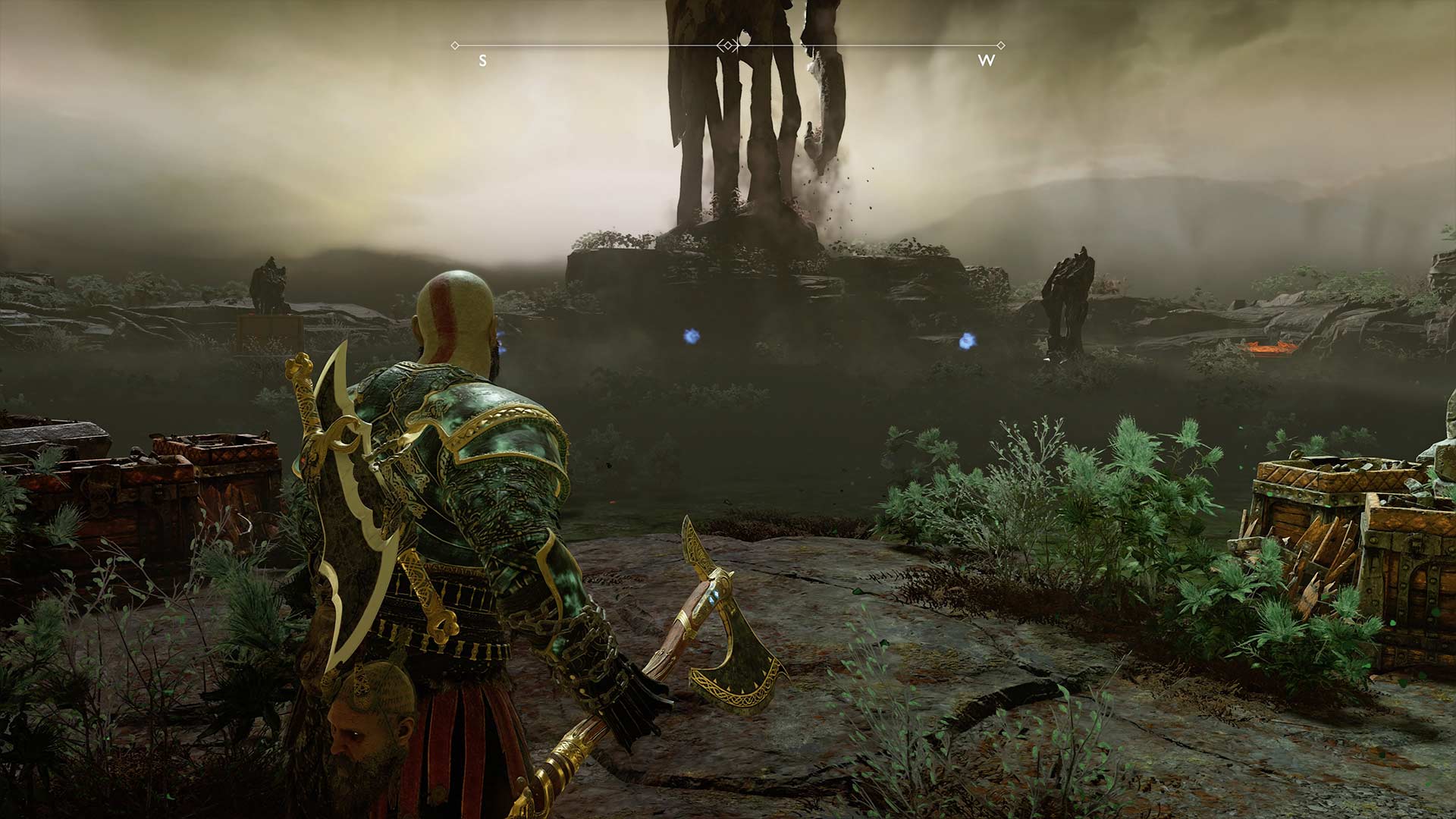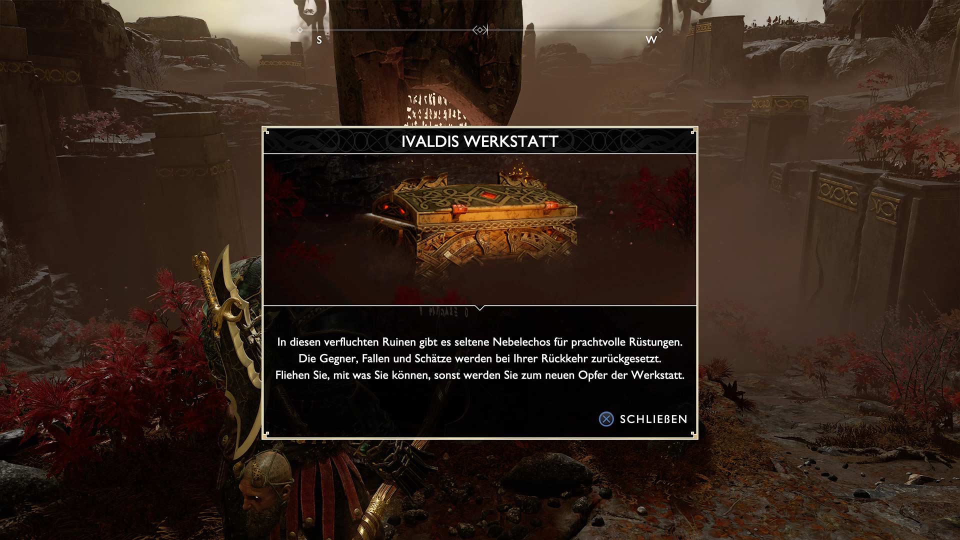 Schließlich erwarten euch dort nicht nur einige Schatztruhen mit interessanten Gegenständen, sondern auch Nebelechos. Mit dieser Ressource könnt ihr insgesamt drei komplette Rüstungssets (jeweils mit unterschiedlichen Werten) in Sindris Laden freischalten. Der Zwerg befindet sich direkt vor dem Labyrinth. Allerdings ist der Boden des Gebiets mit giftigem Nebel bedeckt, der langsam aber unbarmherzig an der Gesundheit von Kratos knabbert.