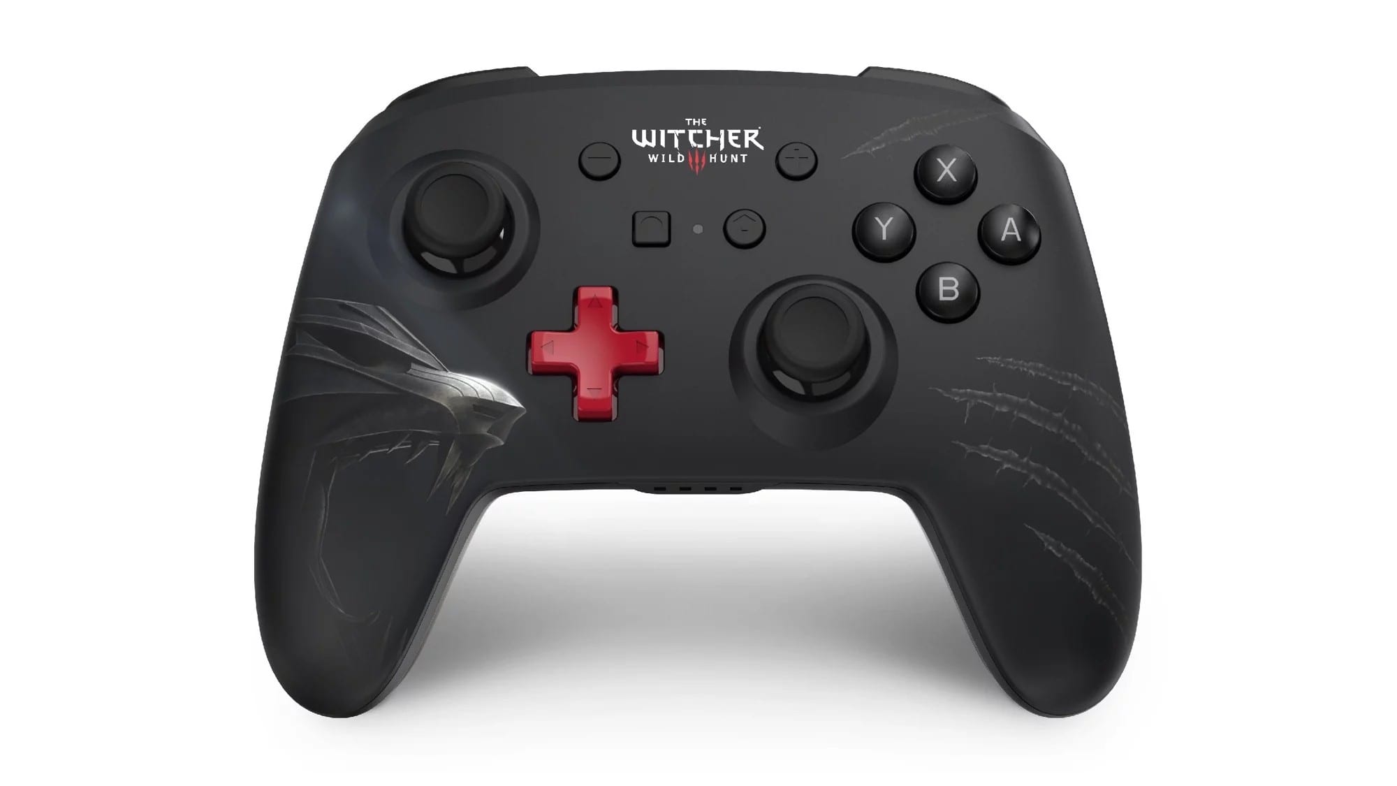 Die Firma PowerA ist für diese Variation des Enhanced Wireless Controllers für die Nintendo Switch verantwortlich. Im schlichten Schwarz gehalten und mit dem „The Witcher 3: Wild Hunt“-Logo in der Mitte bestückt, ist das hübsche Teil auf der Vorderseite mit einem roten Steuerkreuz ausgestattet und seitlich mit dem Wolfsymbol sowie den entsprechenden Klauenspuren verziert. Die Hardware ist dabei von Nintendo und CD Projekt RED lizenziert