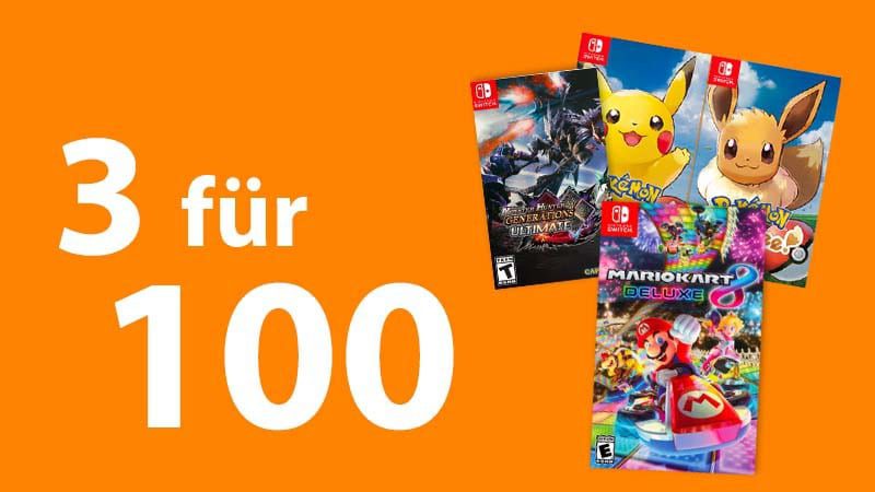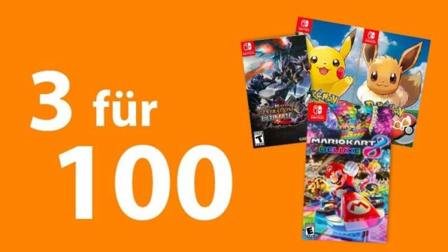 Nur für kurze Zeit sichert ihr euch 3 Switch-Spiele für exakt 100 Euro! Dafür müsst ihr lediglich drei Titel eurer Wahl in den Warenkorb hinzufügen, denn der Preis wird an der Kasse automatisch angepasst.