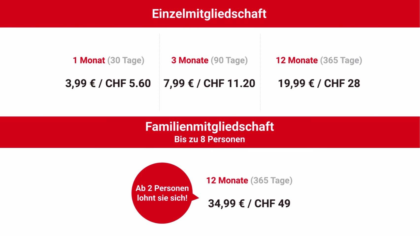 Ihr seht, hier lohnt es sich, einen möglichst langen Zeitraum auszuwählen. Je länger ihr abonniert, desto günstiger wird die Mitgliedschaft pro Monat.