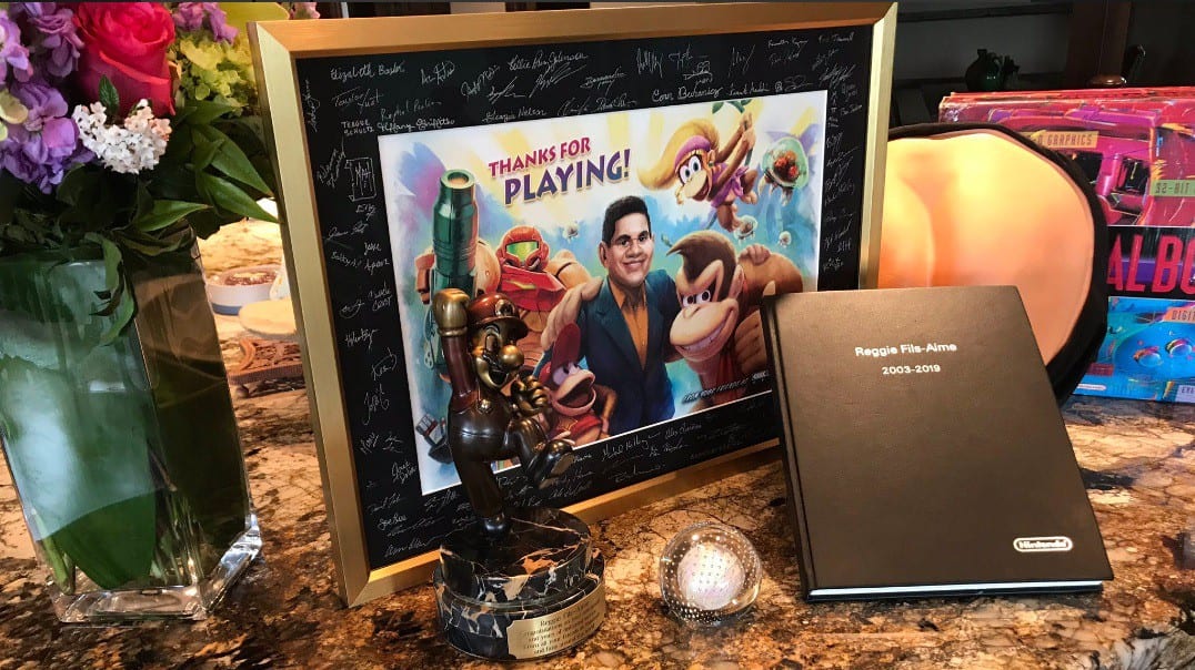 Auf seinem frisch erstellten Twitter-Profil verriet Reggie Fils-Aimé zunächst, dass er das Master-Schwert aus seinem Büro zurücklässt. Es soll dem nächsten Helden mit Weisheit, Mut und Kraft versorgen. Dennoch kann er sich nicht vor den vielen Geschenken retten, die ihm seine Kollegen mitgegeben haben.