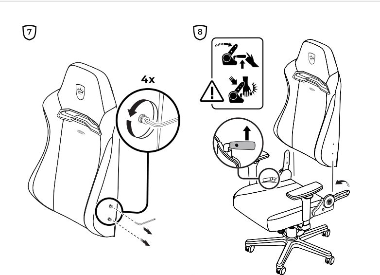 Eine kleine Warnung an alle Anleitungsverweigerer: In der Aufbauhilfe finden sich einige Schritte, die mit einem dreieckigen Warnsymbol versehen sind. Die sollte man tunlichst nicht ignorieren, da ansonsten bei der Montage der Rückenlehne die Stützen der Sitzfläche mit erheblicher Wucht nach vorne schnellen können und das ist ganz schön schmerzhaft, wenn sich in diesem Augenblick Finger im Weg befinden.