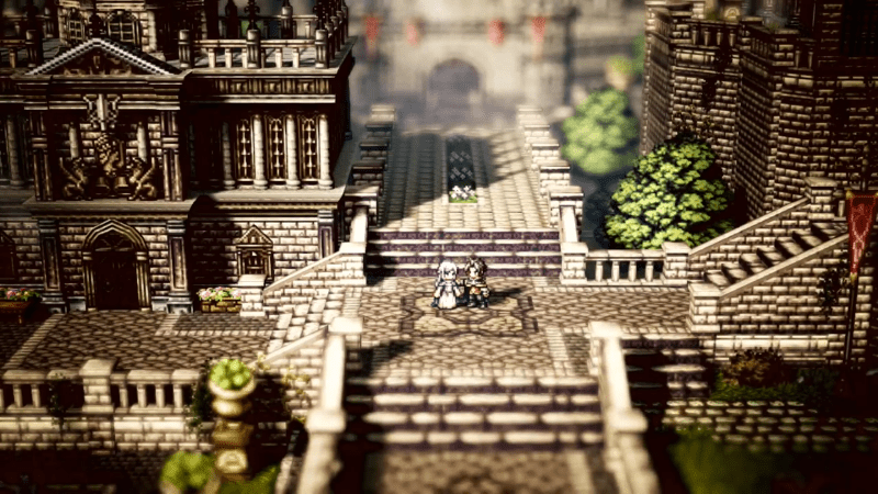 Auch grafisch ist Octopath Traveler in jeder Hinsicht beeindruckend, besteht es doch aus einer Mischung aus zweidimensionalen Sprites und dreidimensionalen Modellen. Es entsteht der Eindruck eines modernen Dioramas. Die Entwickler bezeichnen dies als HD-2D-Grafik.