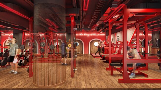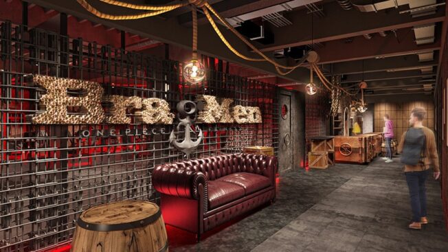 Der stählerne Körper soll allen voran durch Spaß erreicht werden. Dafür schlüpfen die Couches in Marine-Uniformen und begrüßen Rekruten und Rekrutinnen in Trainingsräumen, die den Settings von „One Piece“ nachempfunden wurden.